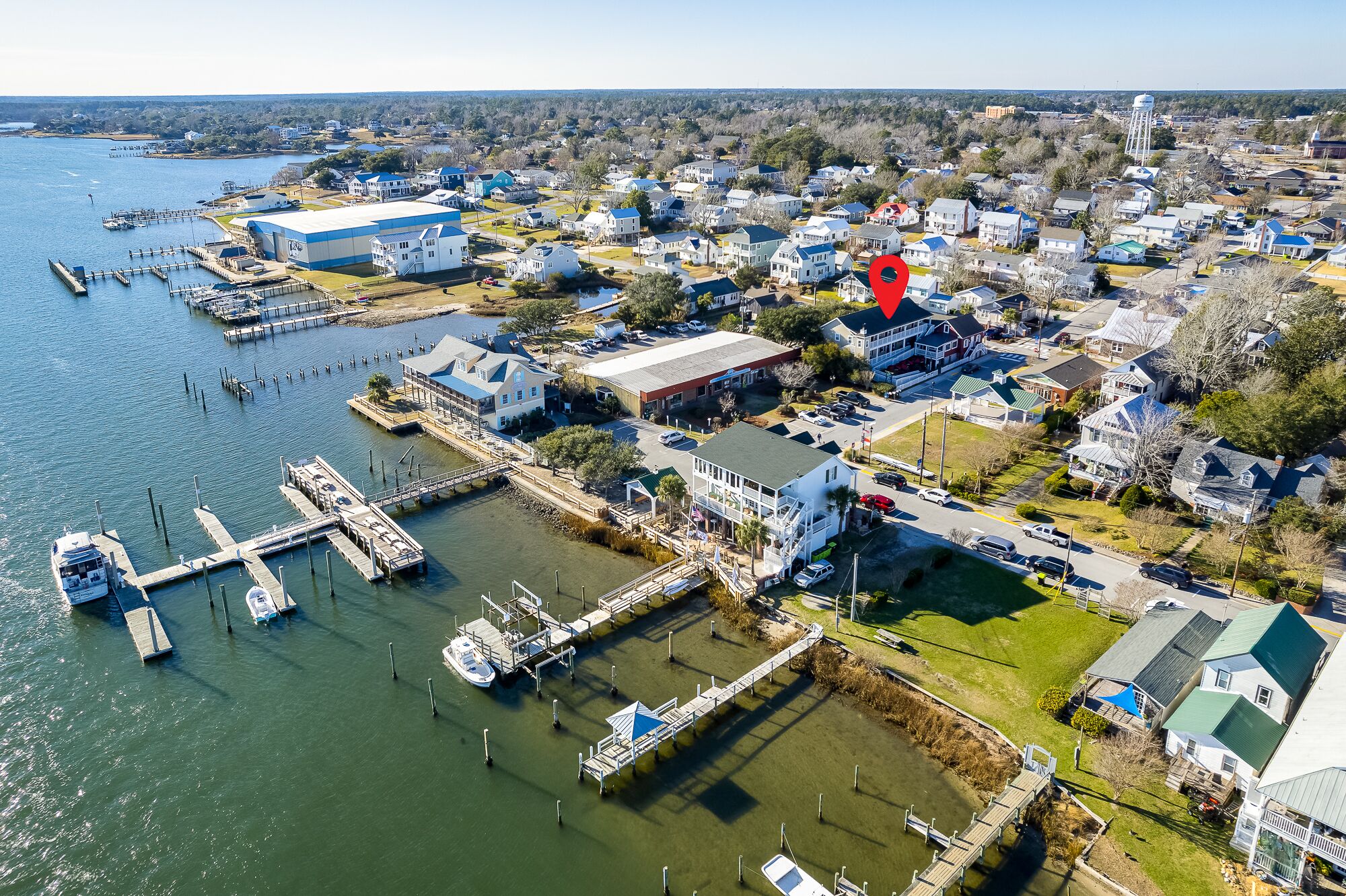 - "Stayed in Swansboro for a short weekend at the beach. Well open lamin Tony for communication. The entire time. Will definitely stay again" - "The property is on the 2nd floor of a commercial building, and it feels like you are in a big home on the water when you look out the windows at a more than 180-degree elevated view of the waterway. It is very comfortable with a large open kitchen and living room area that opens to a wrap-around porch. You can sip coffee from the porch and admire the view and then pop down to the park and fish off the public dock where we caught a lot of bluefish. The By the Bridge restaurant downstairs is very convenient and has a good cuban sandwich. We had a great stay exploring Swansboro."