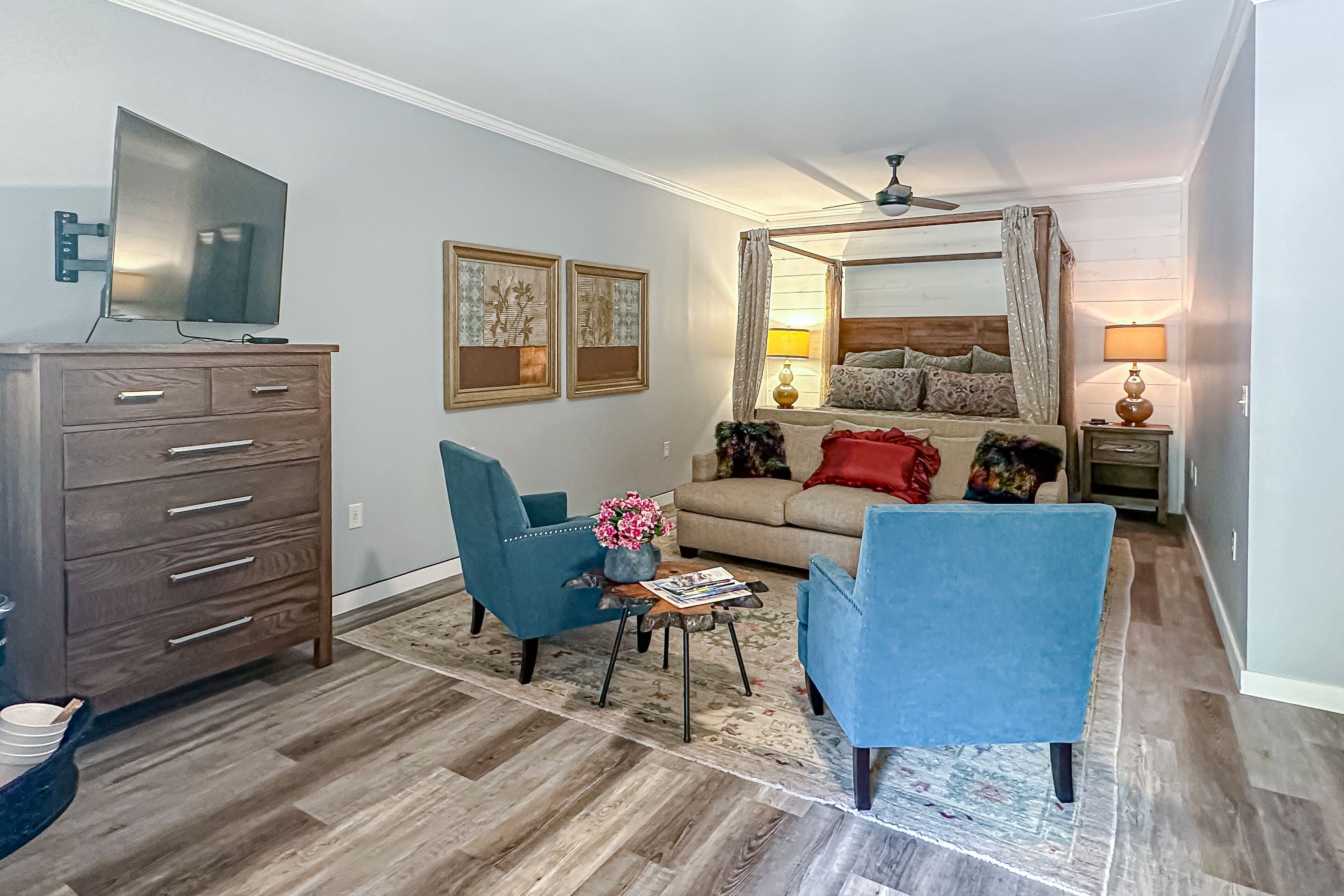 Studio: King Bed | Living Area: Queen Sleeper Sofa | Additional Sleeping: Pack ‘n Play