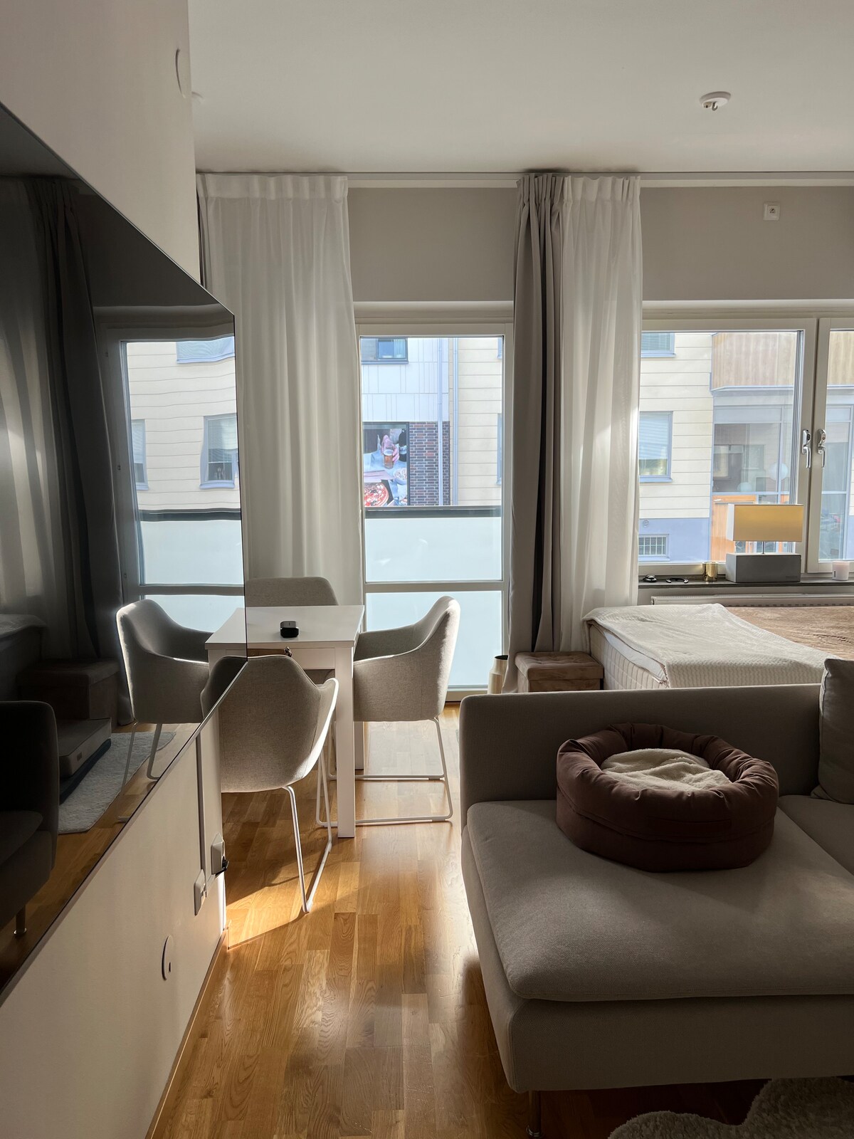 Welcome to stay in this modern studio apartment in HomeX Hotel in Täby with its own private balcony and private office. The building also offers access to its great common areas like its full service kitchen, gaming room, shared lounge and terrace.