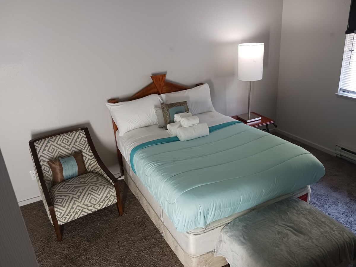 A spacious and open floor plan. Plush down bedding with queen sized bed. Spacious closets and tasteful decor throughout.