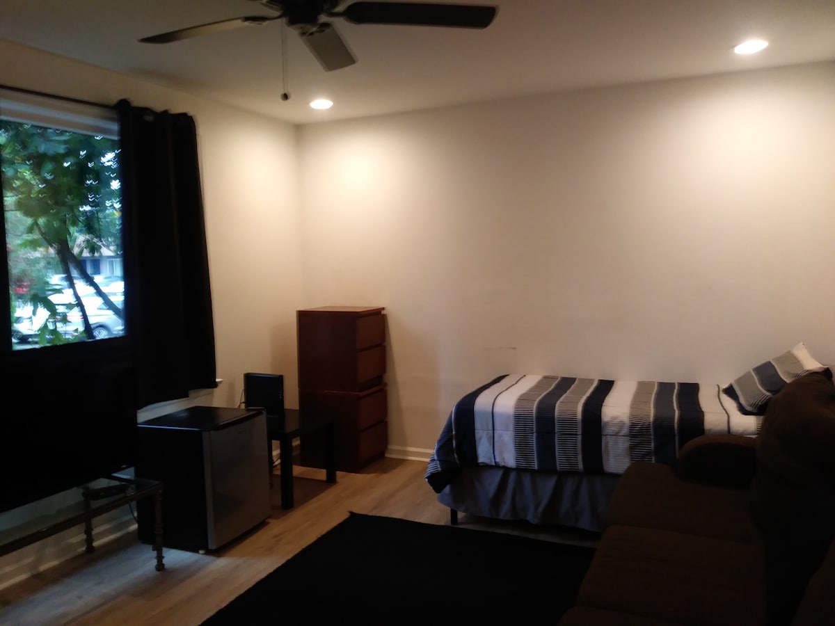 This listing is for the daylight basement studio only. It has its own private bathroom, and private entry located inside a cozy and stylish house in Tacoma, WA. This home designed with your comfort in mind. The house features 2 levels: on the main level there are three bedrooms with a shared large bathroom, and one bedroom with a private bath; and a studio apartment in the basement level (this unit). The reservation comes with one free parking on the property.