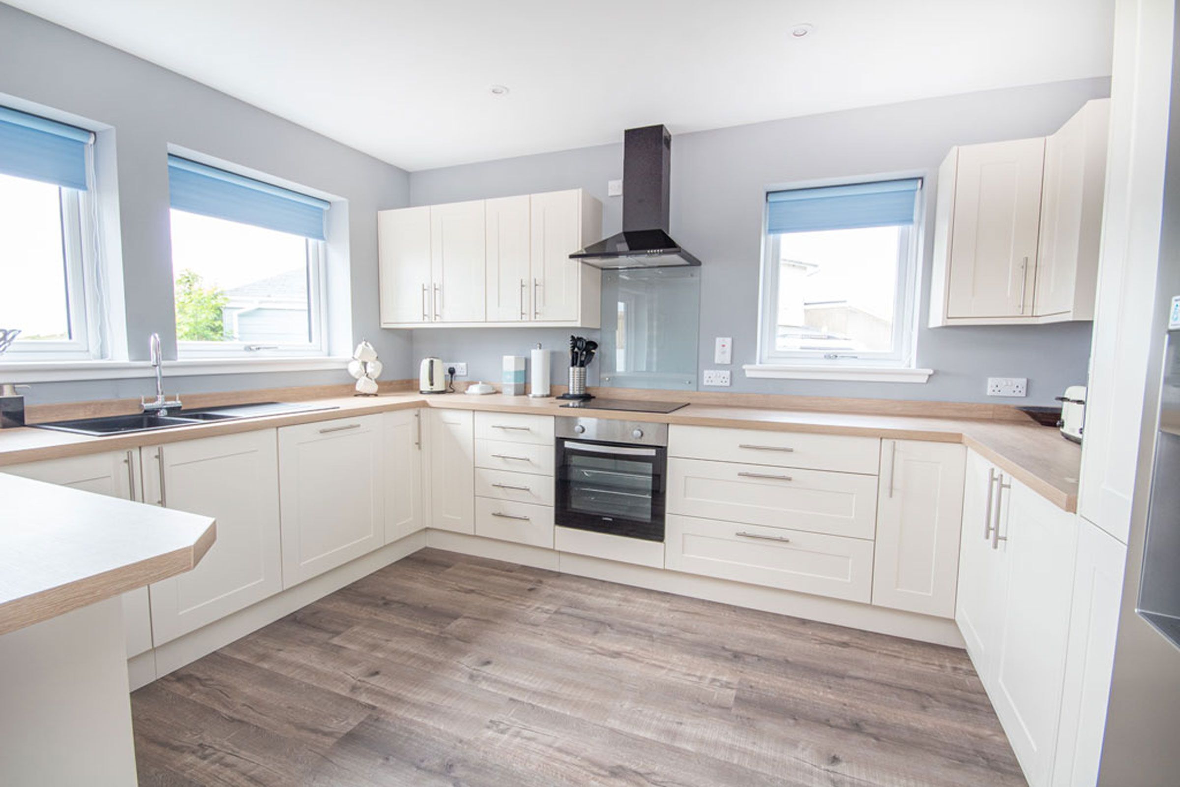 On The Beach is superb modern detached house situated right on the seafront in the pretty fishing village of Balintore This stunning architect-designed house will appeal to families and groups wishing to enjoy the ultimate beach holiday. The main living room, is on the first floor. It has its own balcony, maximising the stunning panoramic views across the sea and along the sandy beach. There are four generously proportioned bedrooms ( three en suite with a separate family bathroom). The spacious master bedroom also has a dressing room. The downstairs kitchen is exceptionally well equipped with all modern appliances. Separate dining room.