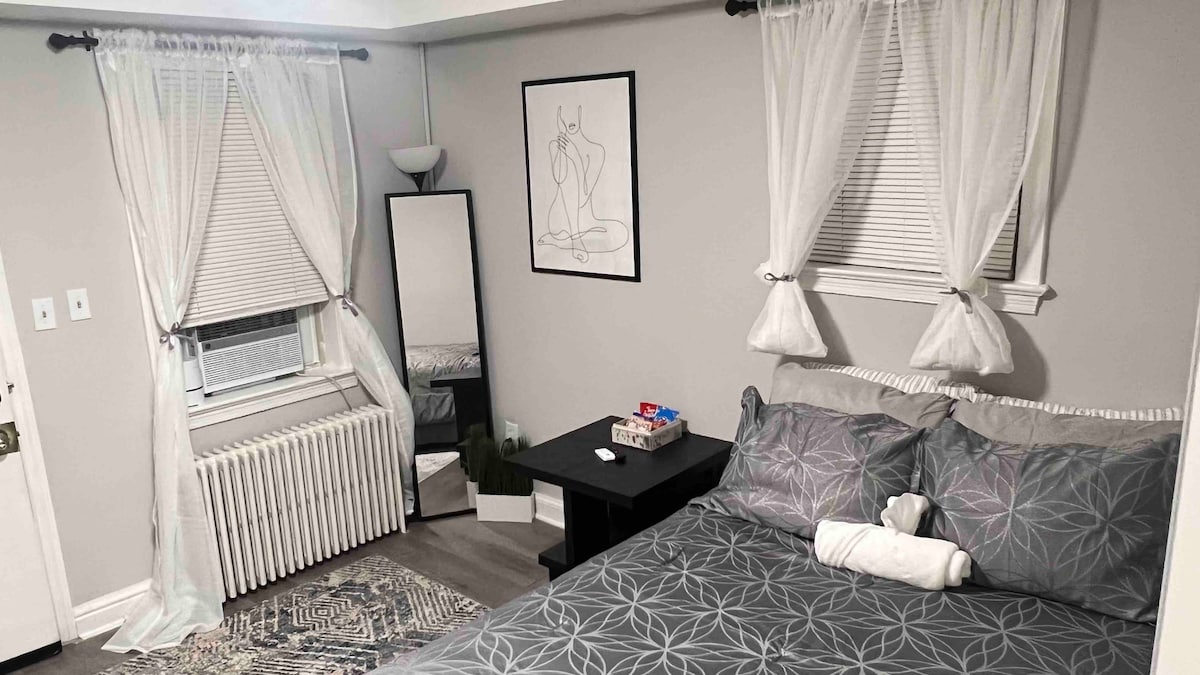 Welcome to our serene 2-bedroom apartment in Petworth, DC! Perfect for both short and long-term stays, this newly renovated space offers a cozy and stylish living. Each bedroom provides a tranquil, well-lit environment with the most comfortable beds to ensure a restful night’s sleep. The fully stocked kitchen includes all cooking supplies you’ll need. Lastly, the apartment features an in-unit washer and dryer for your convenience, and private parking is available. What more could you ask for?