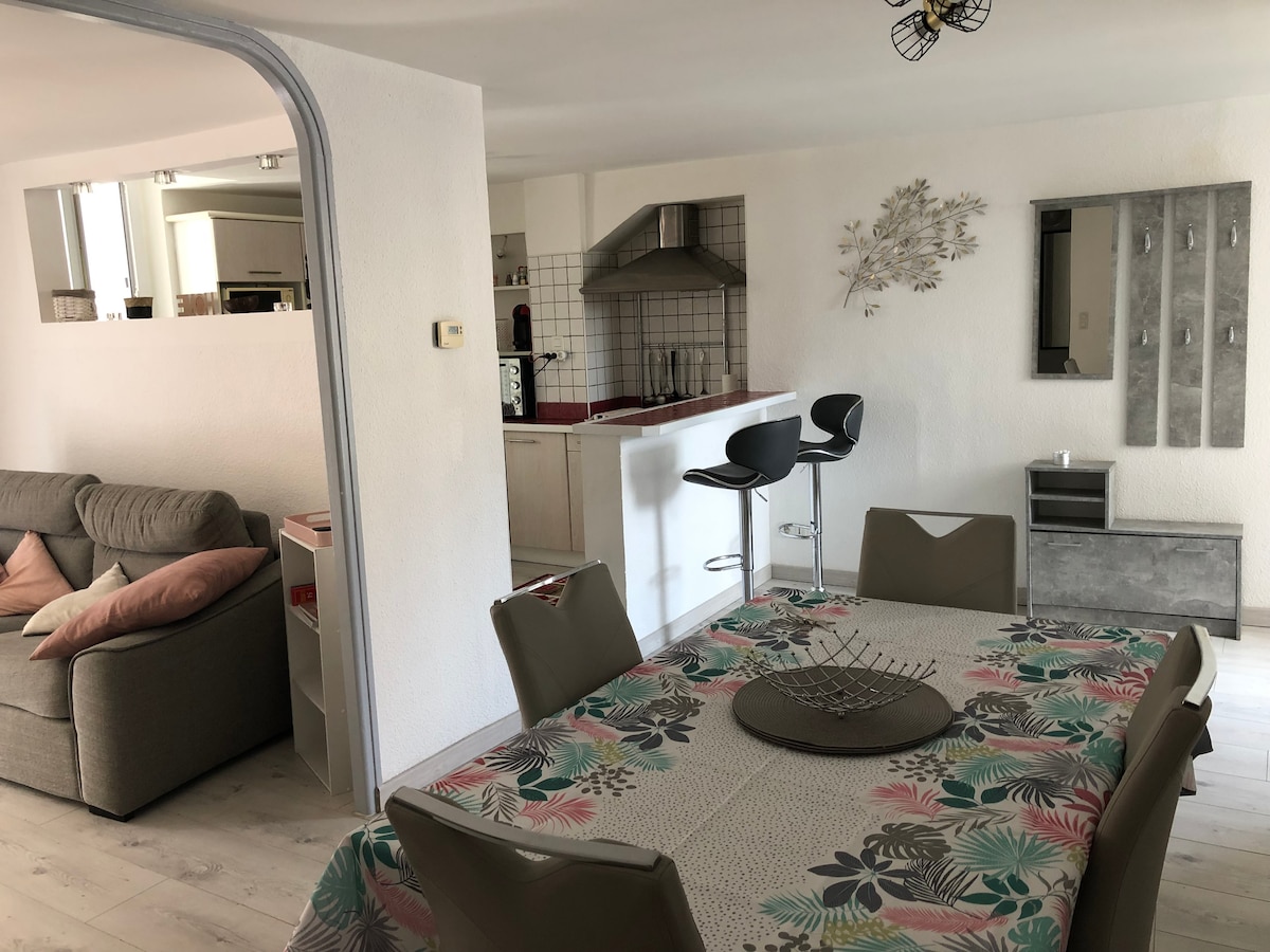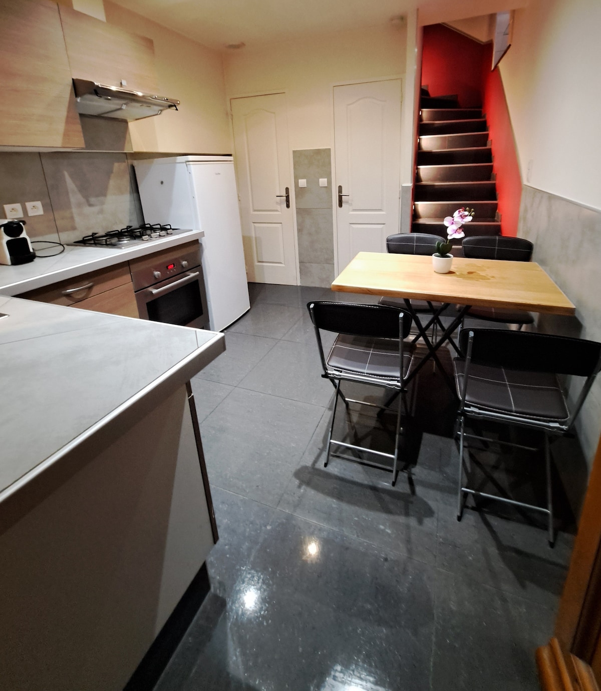 On the 1st floor of a village house in the center of the village, you will find an equipped kitchen (dishwasher, microwave, hotplates, oven, fridge, freezer, coffee maker), with a living-dining room with TV. .