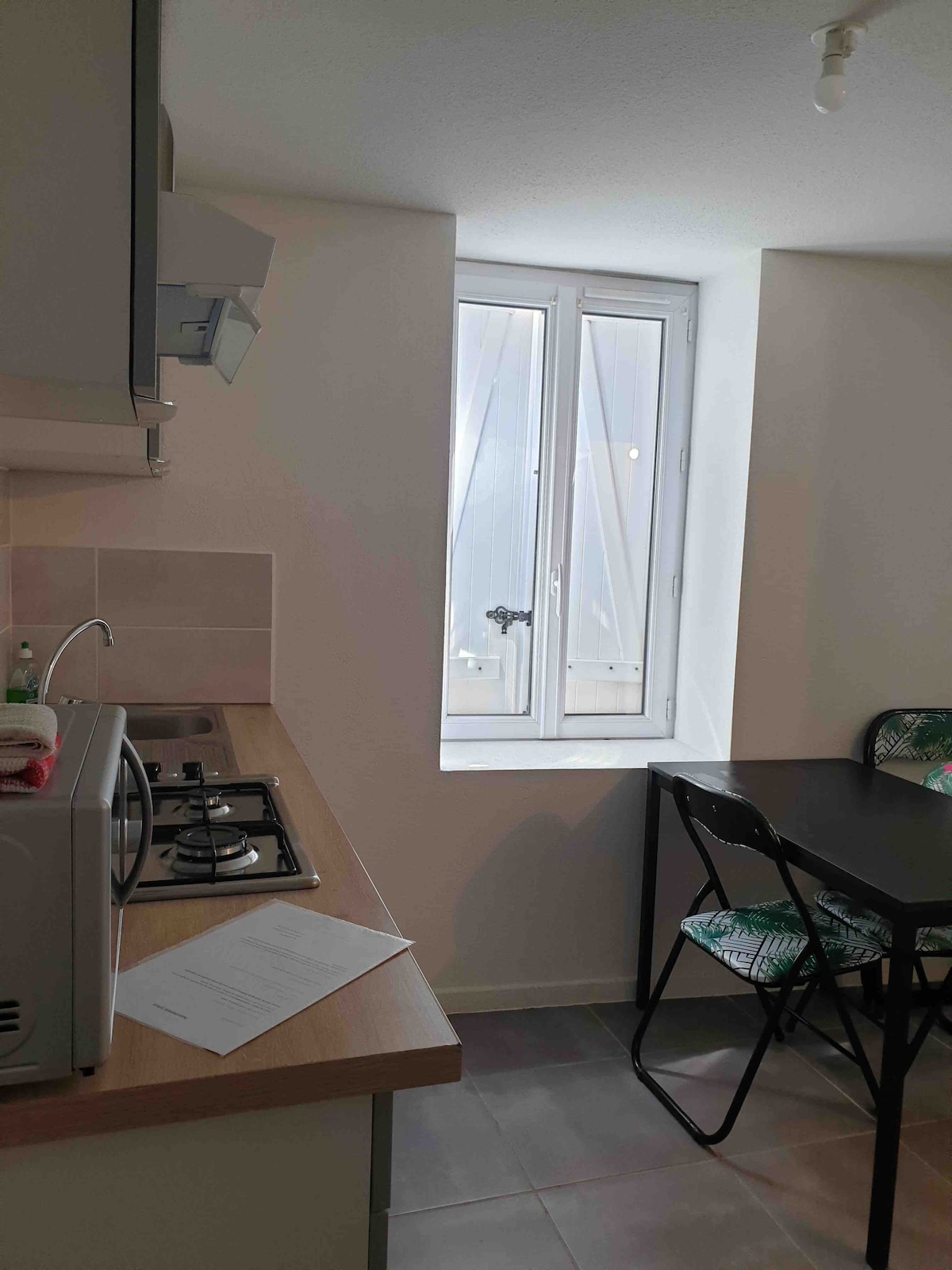 Our studio is 28 m2, you will find a kitchen, shower room with toilet, a 160/200 bed, TV etc. Our house dates from 1927, so no elevator but a large staircase.
