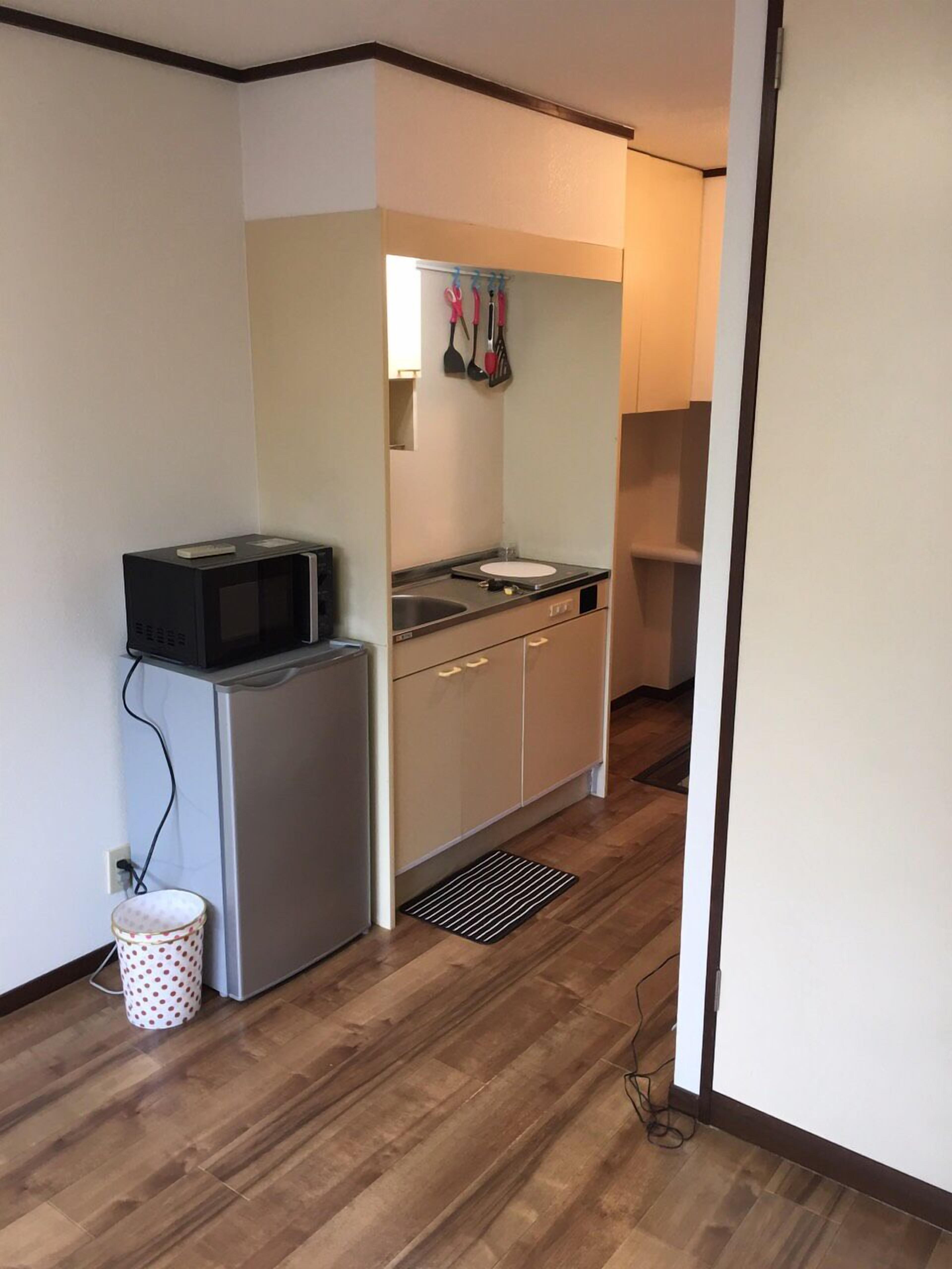- Small kitchen, Rice cooker, Refrigerator, Electric kettle, Micro waves&Electric Oven&Electric Toaster and simple cutlery set.