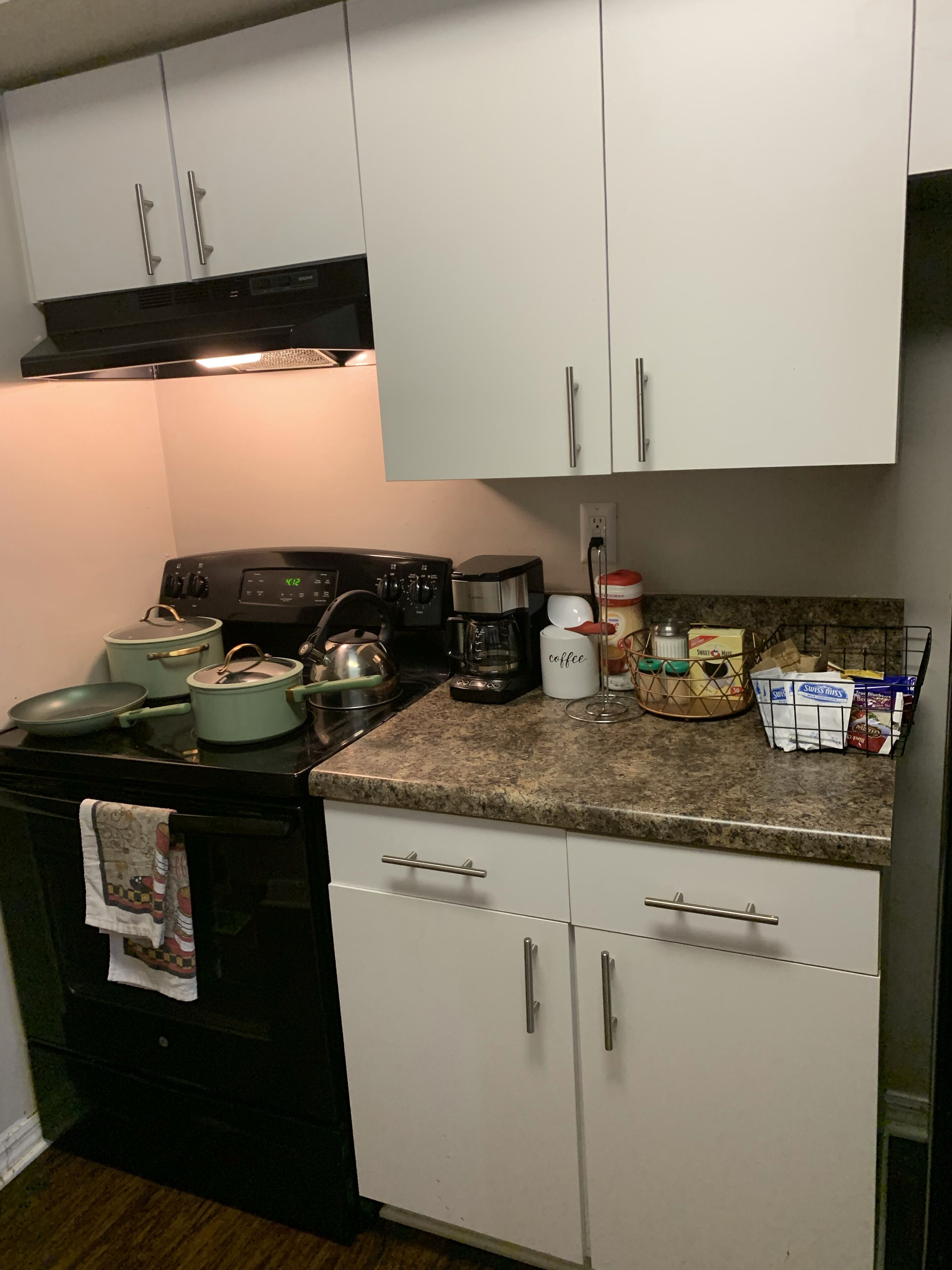 Our kitchen is fully equipped with everything you need to prepare and enjoy meals. A dishwasher , trash disposal, washer, and dryer are also available.
