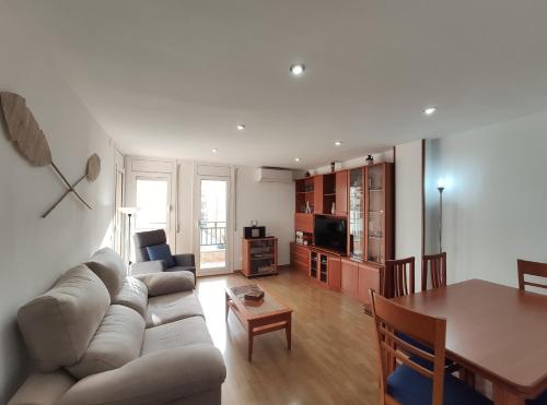 The apartment is located on Calle Destral just 2 blocks from the main squares "La Font," Forum "," Forum, "del Rei," and "Sedassos". It is a three-story building, the apartment is on the second floor; it is very bright and ventilated. Access to kitchen and dining room for the utmost convenience.