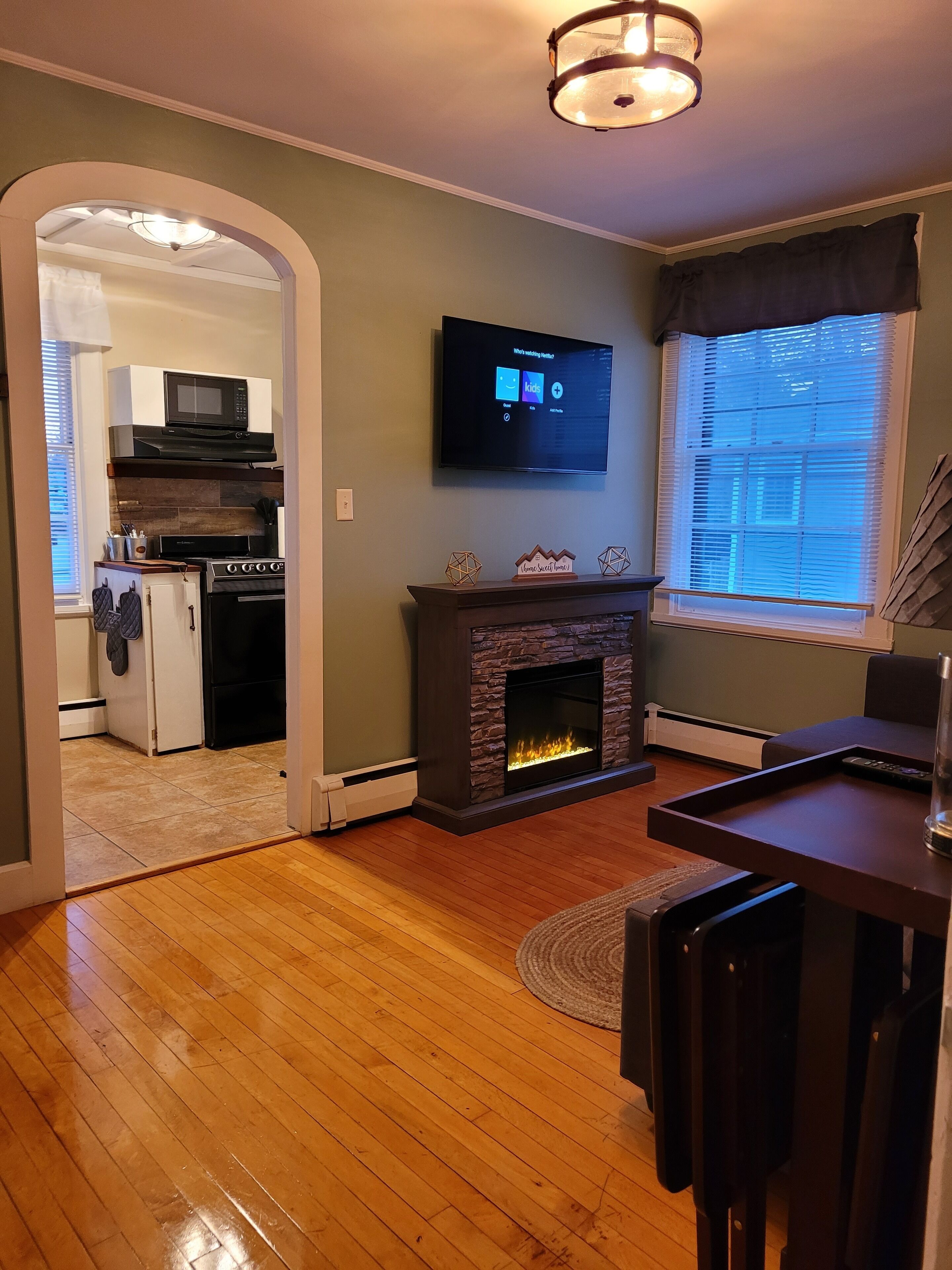 Welcome to your Cape Cod style home! king bed in master bedroom, 2 queens in second bedroom. Arcade area for some one-on-one fun. Full kitchen, full bathroom, and all of the amenities needed for long-term/short-term stay. Level 1 EV charging port provided with your stay! Your Cape cod style home is located on the 3rd floor of an 1852 Historical home! We look forward to hosting your stay.