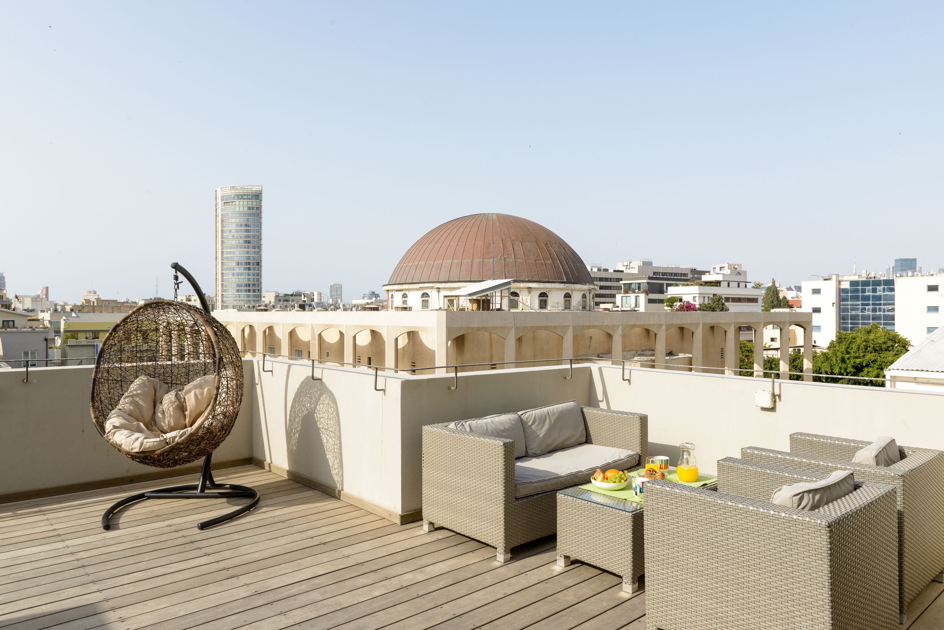 This luxury penthouse is located in the heart of the residential ROTHSCHILD area, the historical Bauhaus and Israeli art village-like neighborhood. It is also ideally at the crossroad of the new beating business/gourmet/nightlife hearts of the white city.