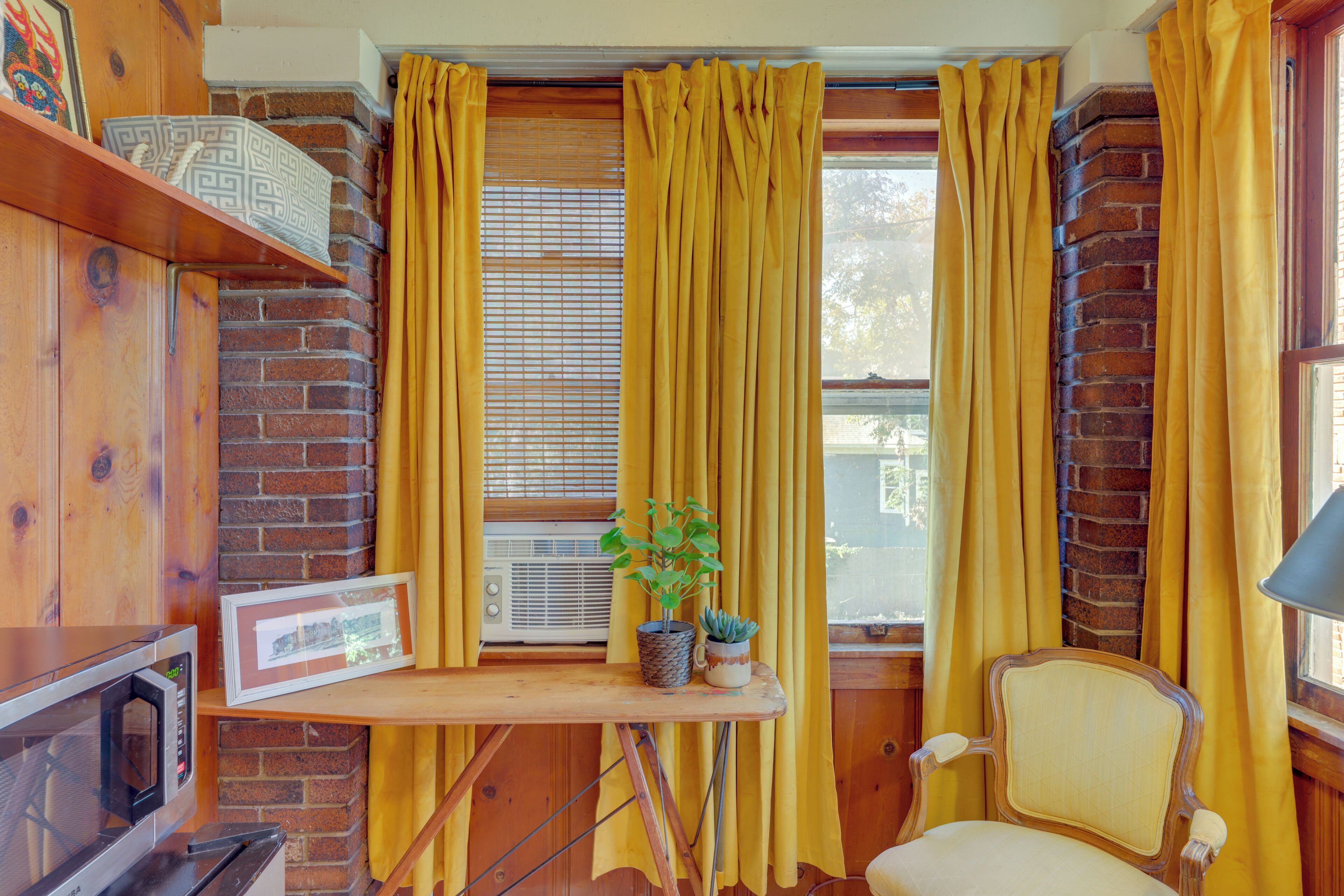 You will find this spacious ground level apartment set up for you in mind. Equipped w/fully stocked kitchen, laundry amenities, and a work space, you have everything you need during your stay. The beautiful craftsmanship throughout this space make it a true vintage treasure.