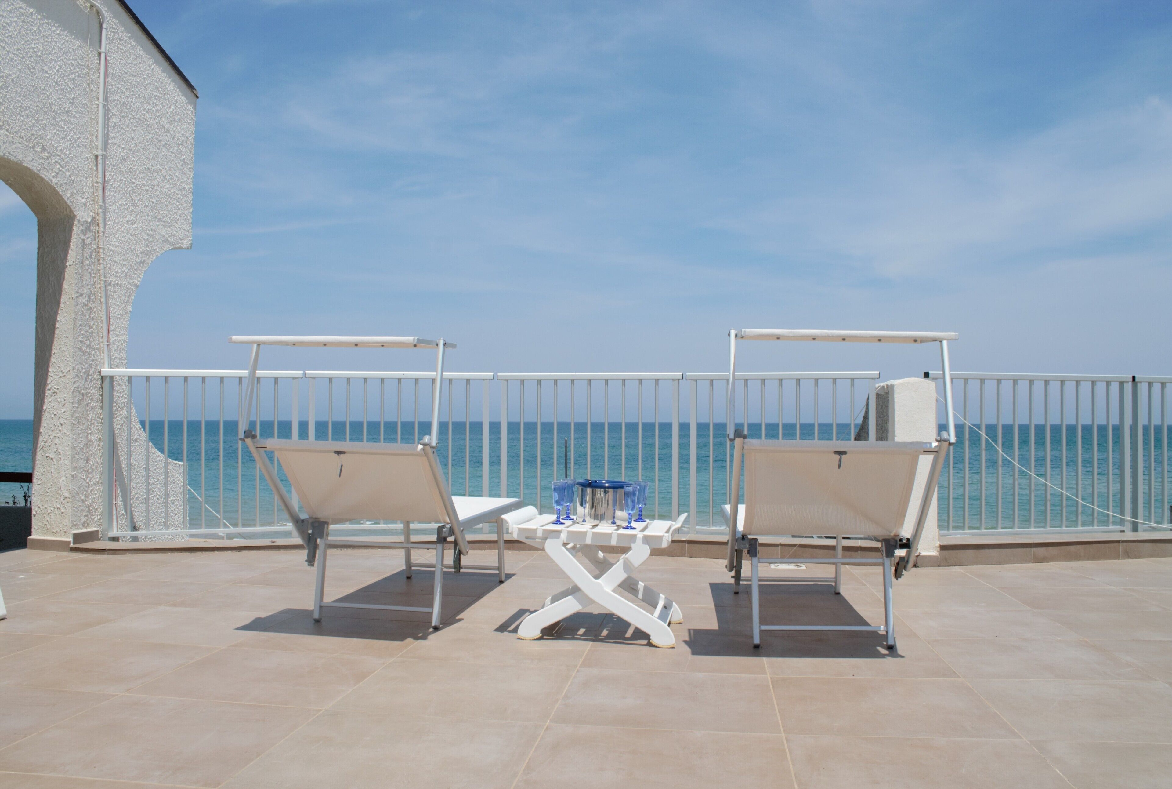 Bright and cosy three-rooms apartment, with private terrace of 22 square meters, on the -2th floor, beach floor, in a strategic area in front of the sea. The kitchen is complete with dishes and appliances: dishwasher, oven, induction hob, and fridge. The sleeping area consists of 2 bedrooms with 1 double bed, 2 single beds, and 1 sofa bed. The apartment is for non-smokers only and is provided with private car park, air conditioning, television, and hair dryer. The house is at your complete disposal and we've put care in every detail in order to welcome you in a clean and comfortable space. The beach in front of the hotel is a free beach. You're welcome, take care of it! . City Tax: € 2,00 per person per night to pay at check-in starting from 1 nights for a maximum of 5 nights