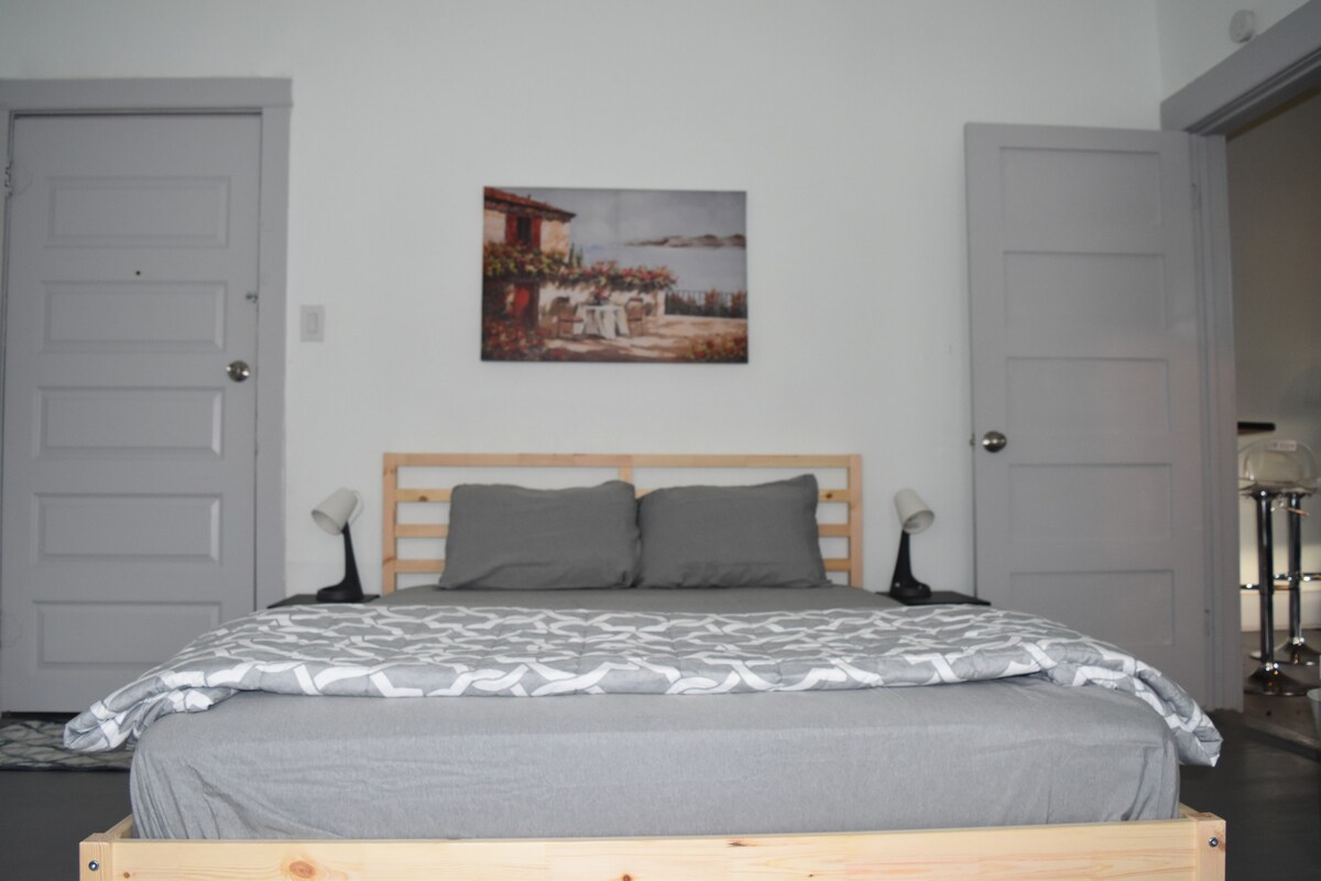 At this historic unit, we aim to provide comfort and you with the feeling like you're right at home. The space offers high ceilings, a fully equipped kitchen, living area & fast fiber Wifi. There are 2 bedrooms available and one full bathroom.