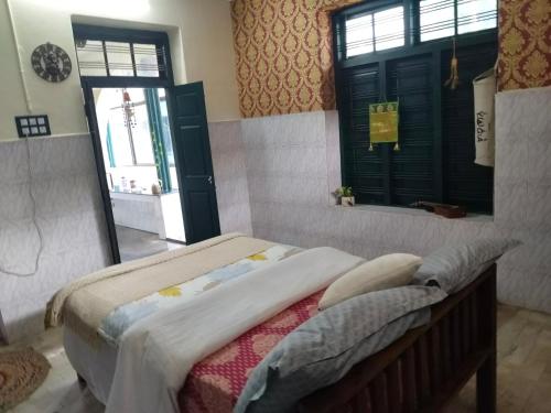 There is a double height living area furnished in wood and vintage artifacts with 2 living rooms with attached bathrooms. The verandah cum balcony looks into the canopy of the old trees around the property. It's private and safe, you also get the whole compound to yourself