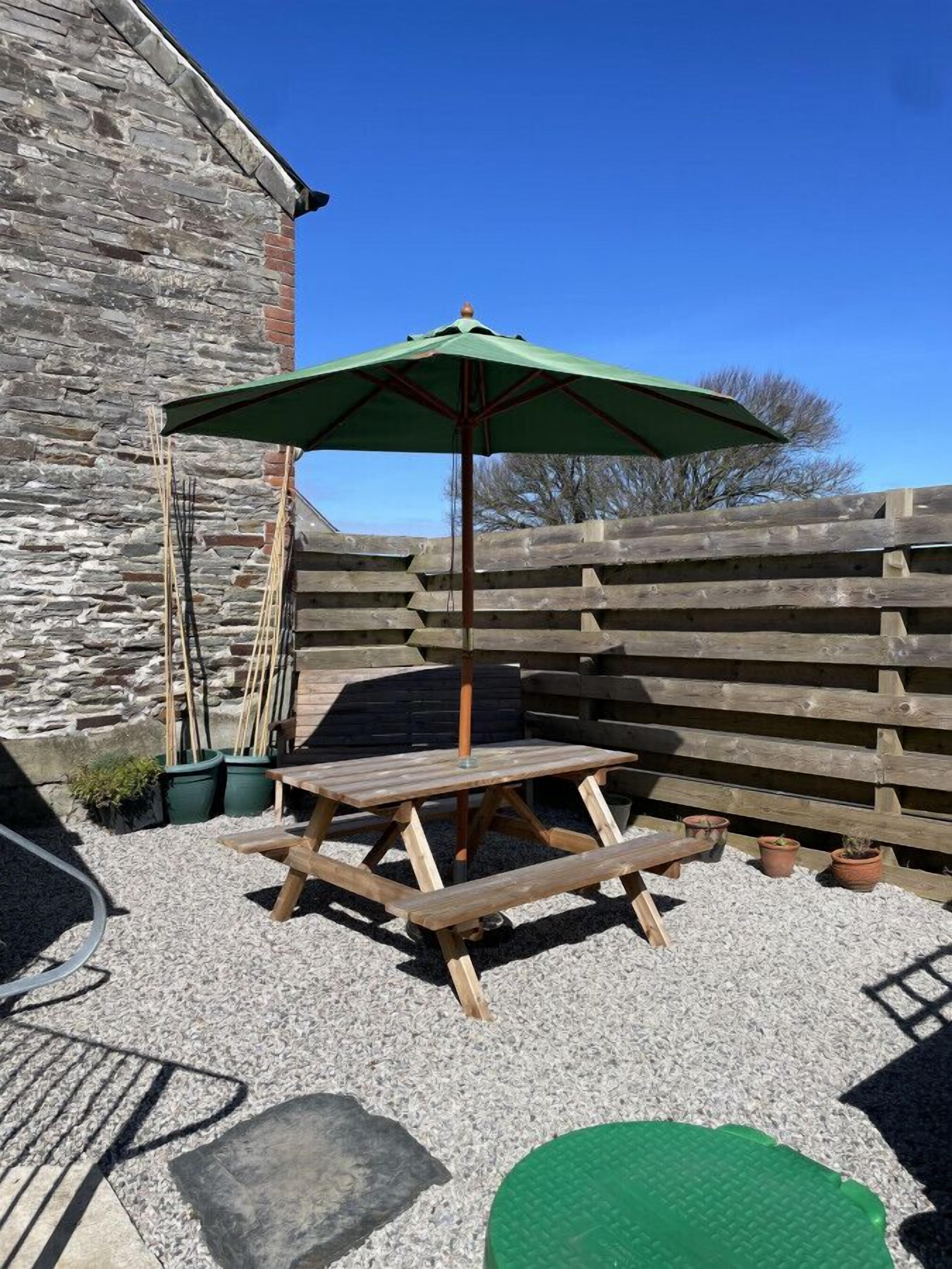 Outside there is a large garden, mainly lawns with flower borders and a rustic table and benches for your use.
