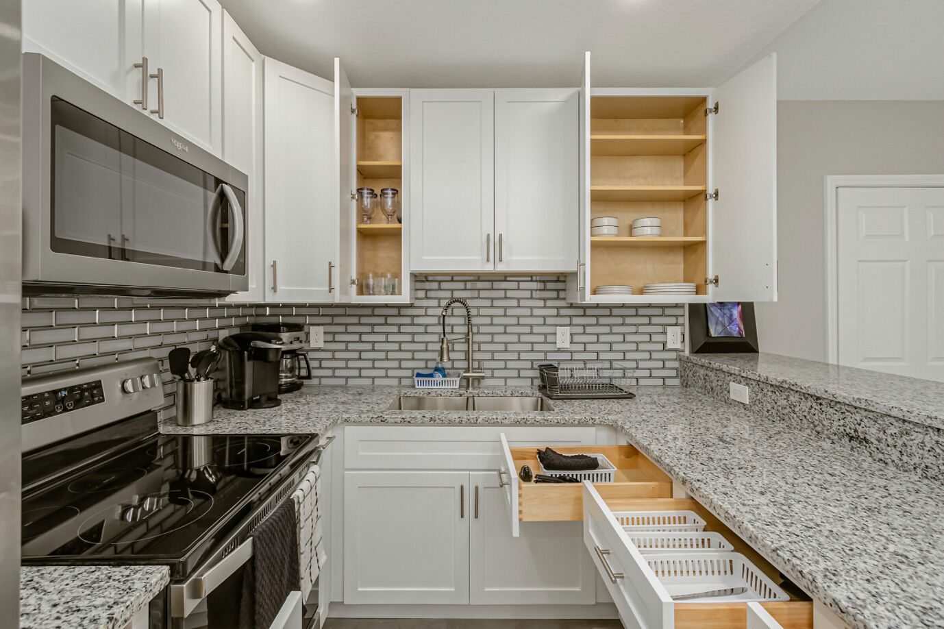 Step inside to find a spacious, open-concept living area with cozy furnishings and plenty of natural light. The fully equipped kitchen has everything you need to whip up a meal, whether it’s a quick breakfast before heading to the beach or a relaxing dinner after a day of adventures.
