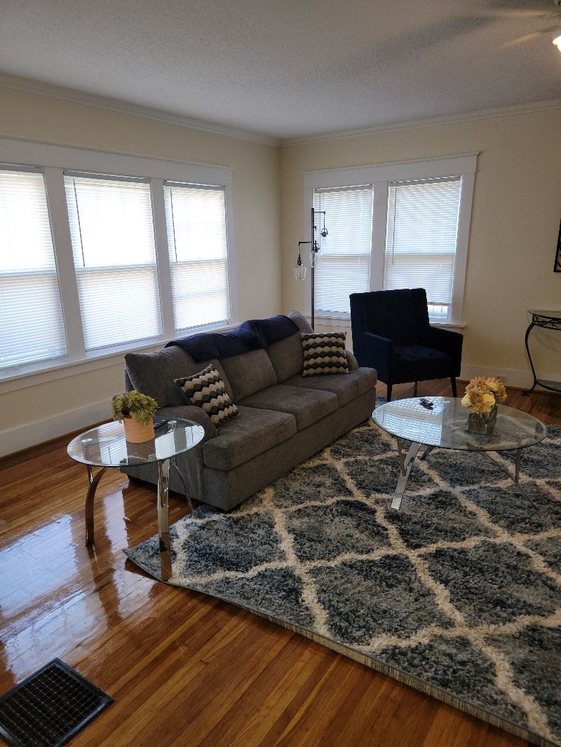 Welcome to this beautiful two-bedroom, one-bathroom house in Toledo, Ohio, for a midterm rental. The lower unit has been recently renovated, featuring a fully equipped kitchen with laminate countertops, a dining room that sits four, and a living room with hardwood floors and a Smart TV. Both bedrooms include a Queen-sized bed, Smart TV, hardwood floors, and a walk-in closet. The bathroom consists of a shower and tub combo.