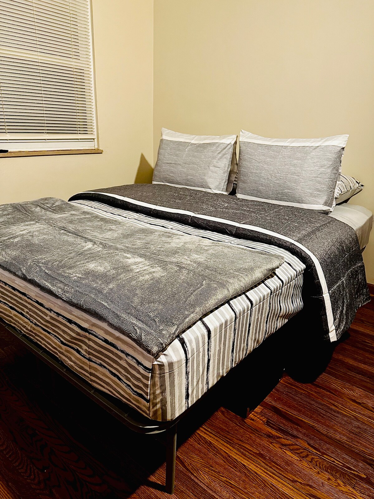 Welcome ideal for couples or solo travelers seeking tranquility. Tucked away in a cozy sub-level nook of a duplex, this spacious 1-BDR apartment boasts a Cloud like King-sized bed, a fully equipped kitchen, and a cozy TV room with a ceiling feature of blackened out industrial look with a few unfinished quirks, adding character to the room. With a remote work-friendly atmosphere,our home offers the perfect blend of relaxation and comfort, your ideal stay