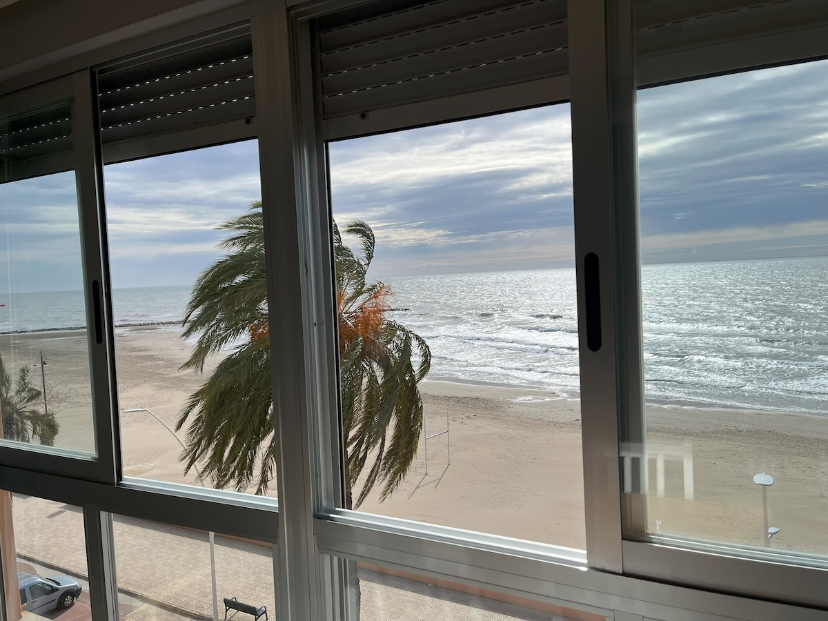 """Apartment on the beachfront in Torrenostra (Torreblanca) with impressive panoramic front views of the sea. It is a fourth floor without an elevator, which allows you to enjoy spectacular views at the expense of doing a little exercise, which is always good for health (the steps of the stairs are very comfortable to climb)