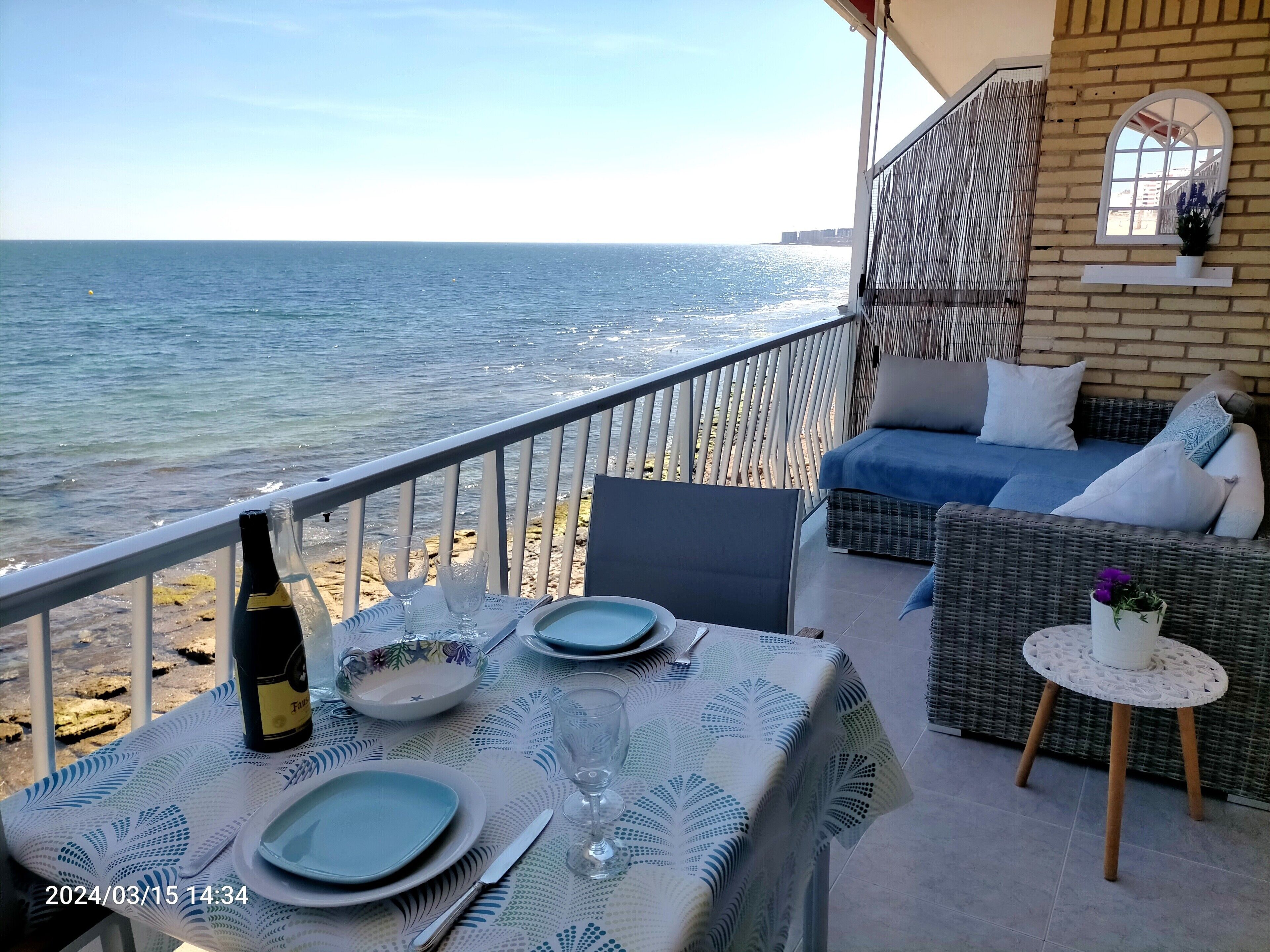 PUNTA PRIMA Seaview is located in Torrevieja, just a 13-minute walk from Cala Piteras Beach and 6.7 miles from Las Colinas Golf Course. This beachfront property offers access to a balcony, free private parking, and free Wifi. Outdoor seating is also available at the apartment. Providing a terrace and sea views, the spacious apartment includes 2 bedrooms, a living room, flat-screen TV, an equipped kitchen, and 2 bathrooms with a bidet and a bath. Towels and bed linen are featured in the apartment. This apartment is non-smoking and soundproof. There is an on-site bar. A year-round outdoor pool and a private beach area can be found at PUNTA PRIMA Seaview, along with a garden. Villamartin Plaza is 4.6 miles from the accommodation, while Salinas de Santa Pola Nature Reserve is 20 miles away. Region de Murcia International Airport is 31 miles from the property.