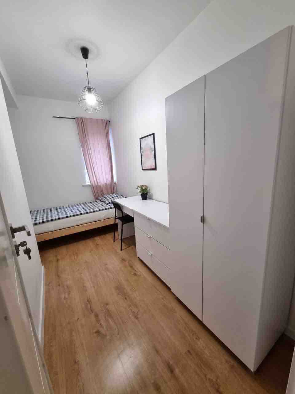 A beautiful room in a quiet and clean place with a work desk and a couch to rest. Kingsize bed with comfortable mattress. There is a well-equipped kitchen, and bathrooms. Very good location, close to Copernicus Atrium, walking distance to the Old Town. Common areas are cleaned daily. Free parking on a quiet street next to the military. Welcome.