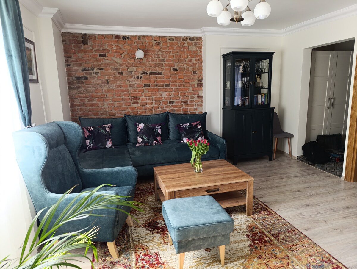 This apartment is in the perfect location of the apartment, close to the Copernicus House, just a few minutes from the Old Town Square, the Town Hall, and the equipment in the apartment for your comfort in Torun (microwave, dishwasher, washing machine) and delicious coffee. Very intimate, but fully functional. The whole is quite classically complemented ...brick as a headboard in the sleeping area, otherwise in Toruń.