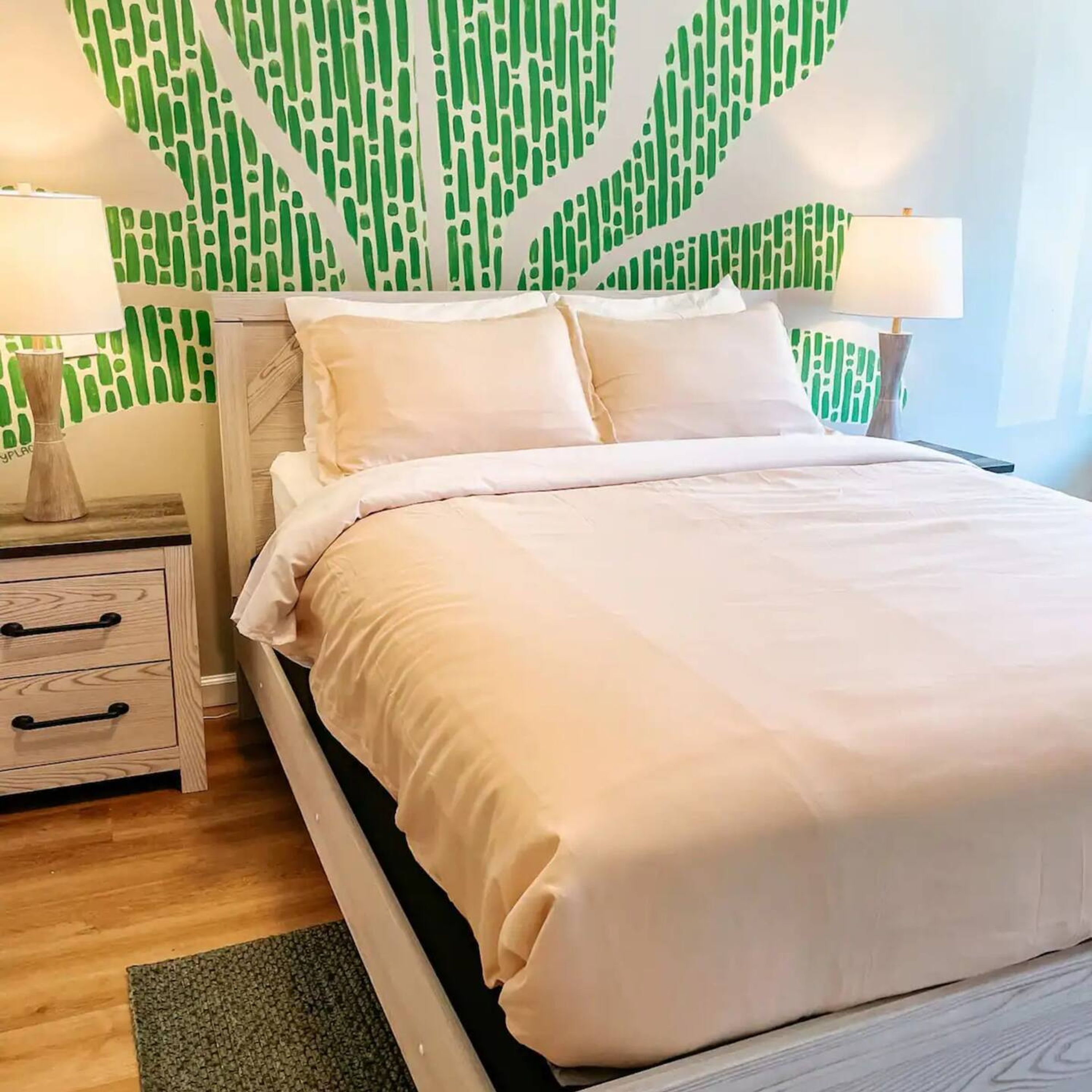 Bedroom: Queen Bed | Living Room: Queen Bed