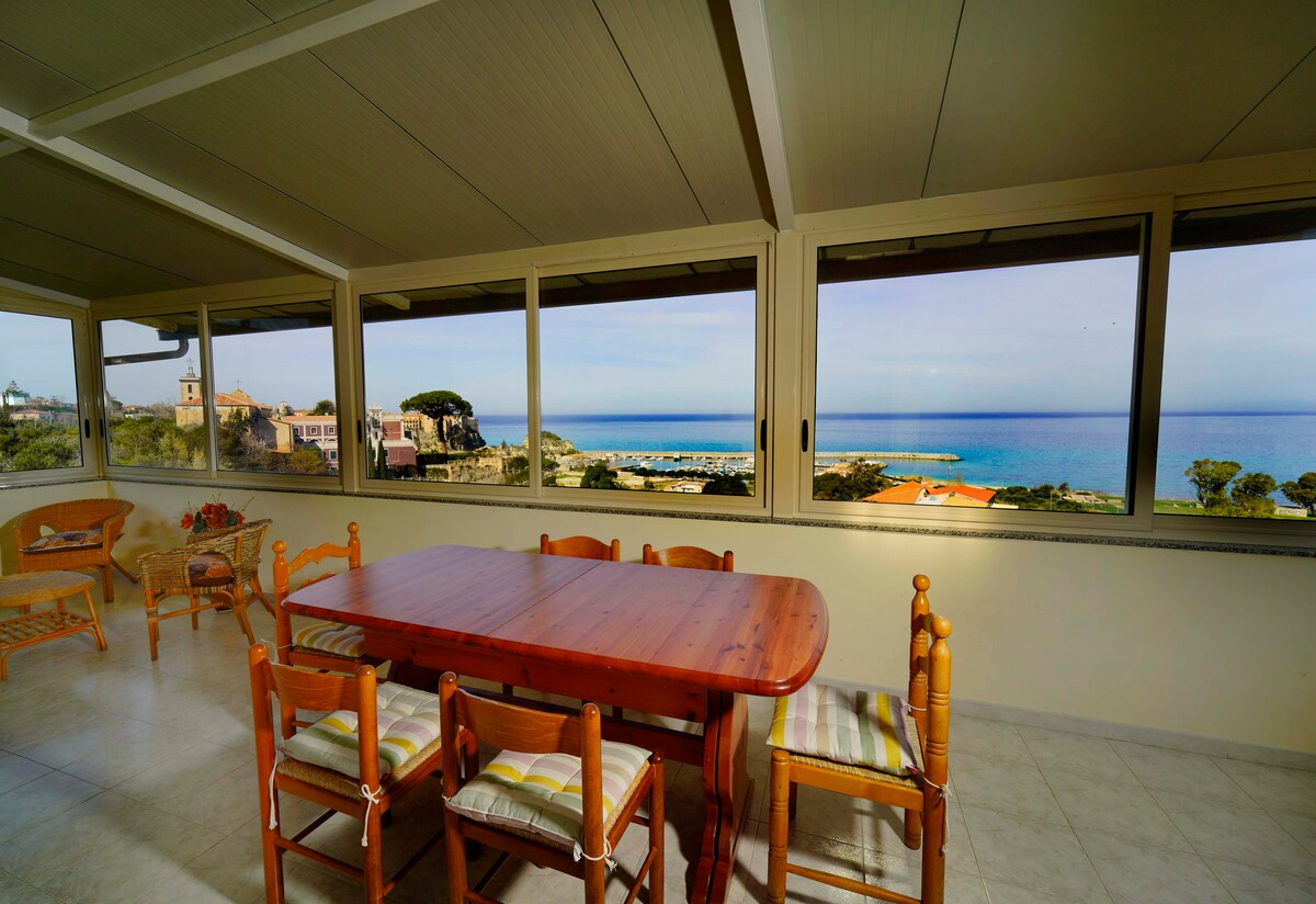 Apartment located in a villa, has a beautiful view of the port , the fortress of Tropea and the sea, basic decor necessary, ideal for enjoying a relaxing vacation, located 500 meters from the sea.