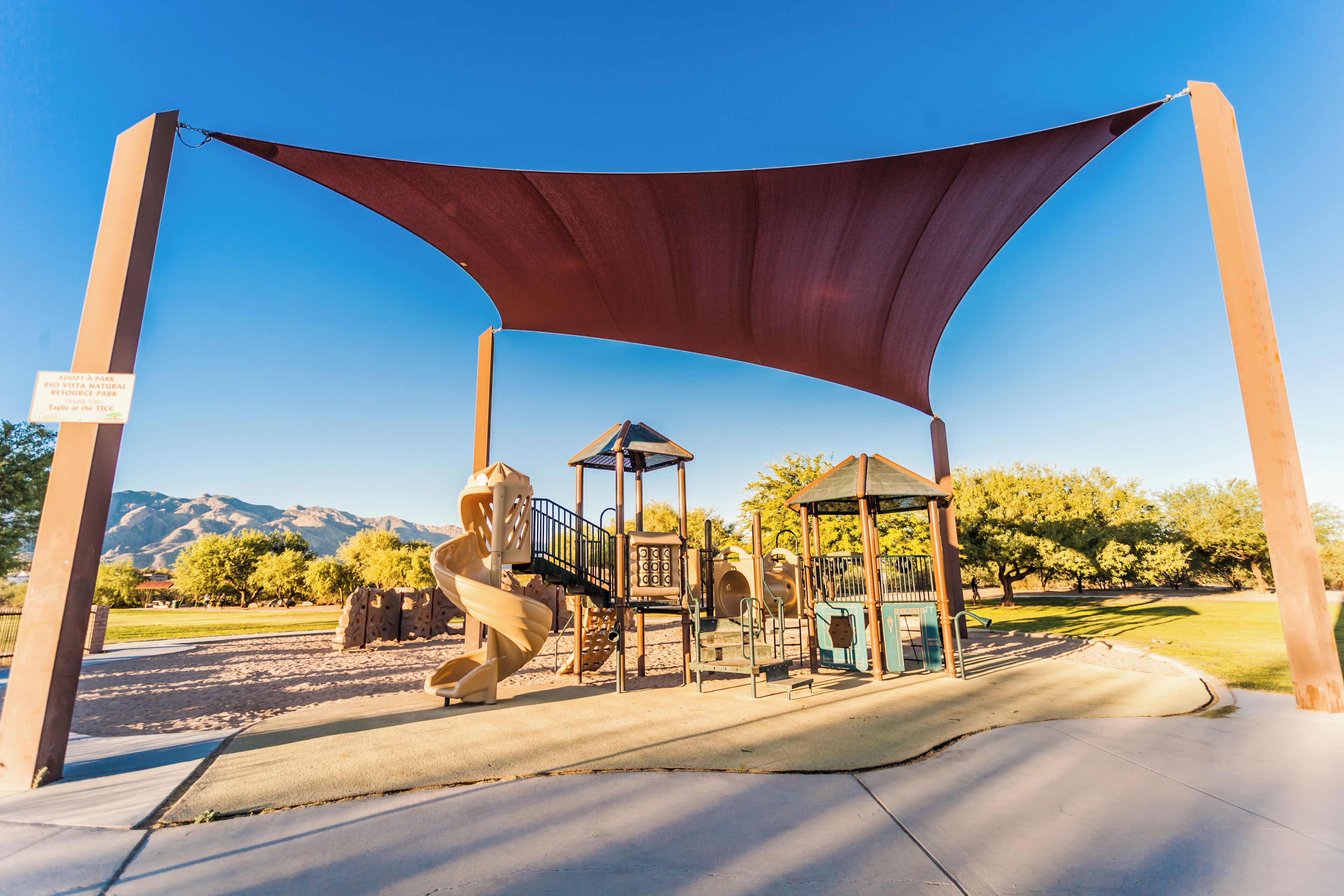 Kids will love the playground with a treehouse, slide, swings, and more. Nature enthusiasts can watch finches, cardinals, and hawks, or listen to distant coyotes at dusk.