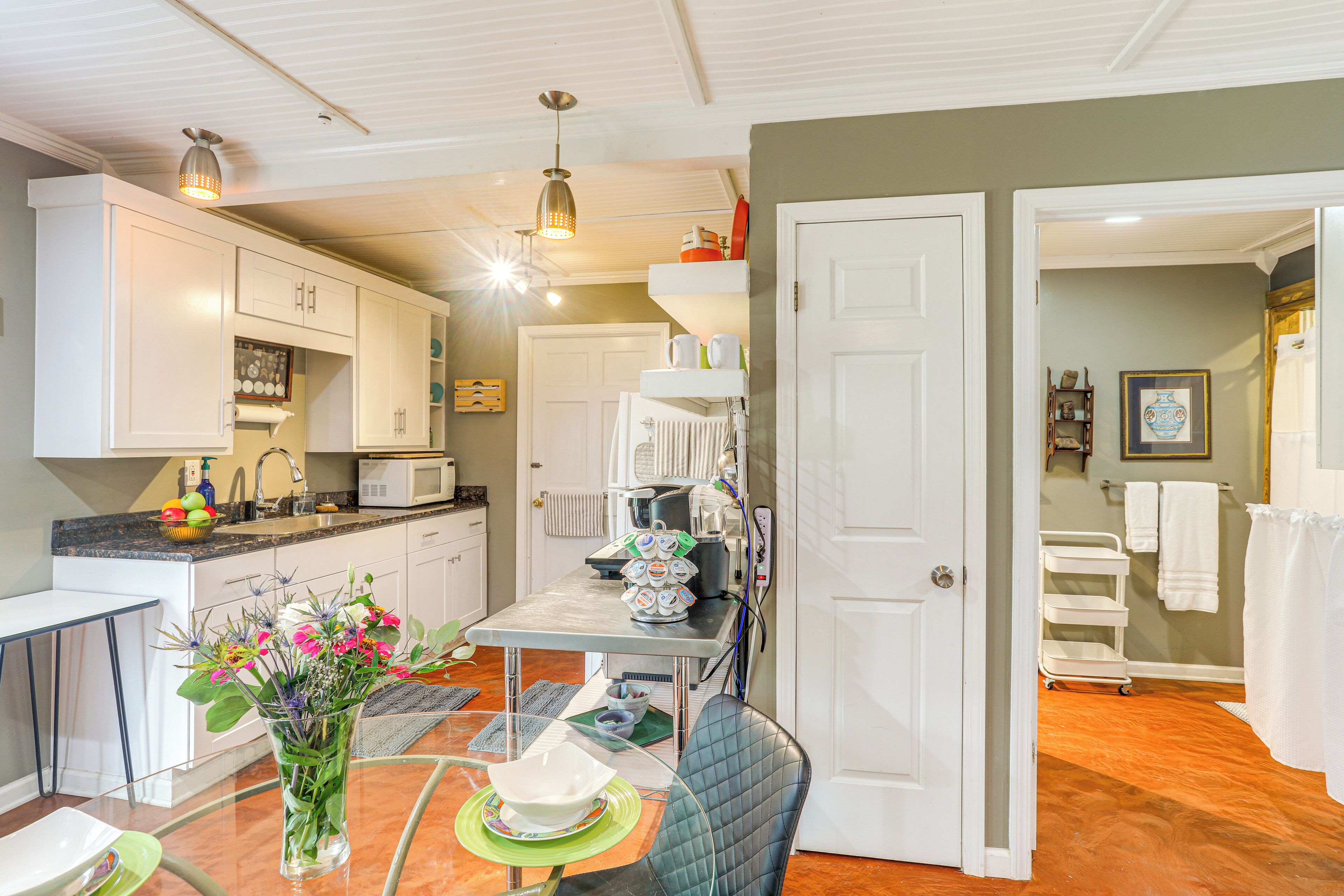 Step inside this vintage Shotgun style charmer, where a cozy front porch swing sets the rock-n-roll mood. Inside, you'll find a living room complete with a comfy sectional sofa, a bedroom boasting a queen-sized dream cloud, a kitchen with a table for two, and a laundry room to keep your rockstar attire fresh. The newly remodeled bathroom features a walk-in tiled shower fit for a spa day, while the back deck opens to a shared fenced yard and an exclusive, private pooch paradise!