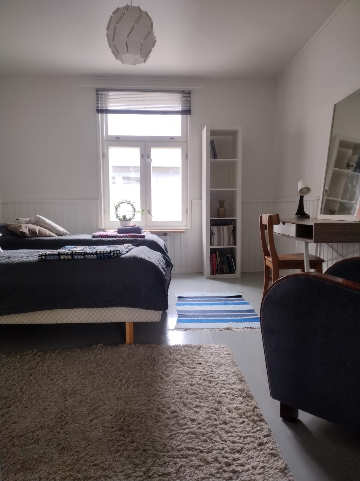 This apartment is for you who are looking for an apartment near the city center or university. A house over 100 years old is located in a quiet wooden house area. You can easily park your car either in a parking space along the street (until 8 pm on weekdays and until 5 pm on Saturdays) or, with good luck, in the yard. Logomo 1.5 km, Market Square 1.5 km, University Hill 1.3 km, bus station 1.2 km. The nearest grocery store is 400m away. You can walk along the wonderful Aurajoki river to the city center.