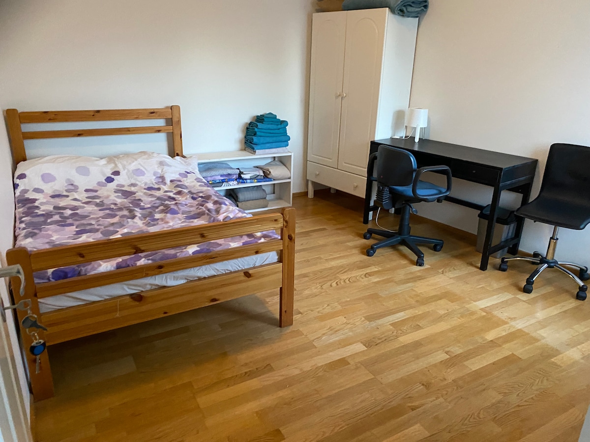 Private room in a quiet apartment building, with a good location and private parking. The city center is easily accessible by bus, the bus stop is 300m away.