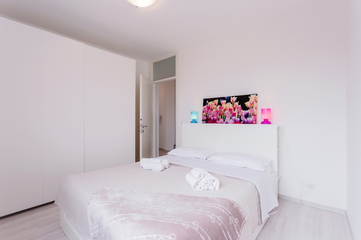 Bright and cozy 50sqm apartment, perfect for 4 people, located on the sixth floor of a modern building with lift. The property boasts a strategic position, a stone's throw from Santa Maria della Misericordia Hospital, in an area full of restaurants, bars, shops, clubs and many other services.