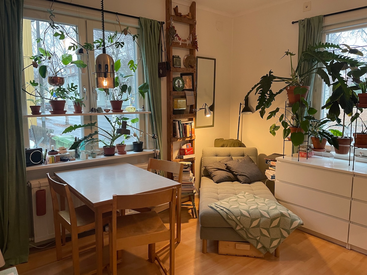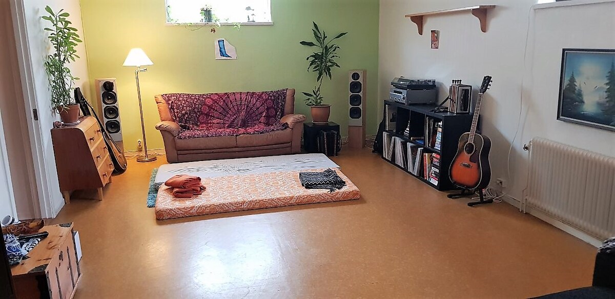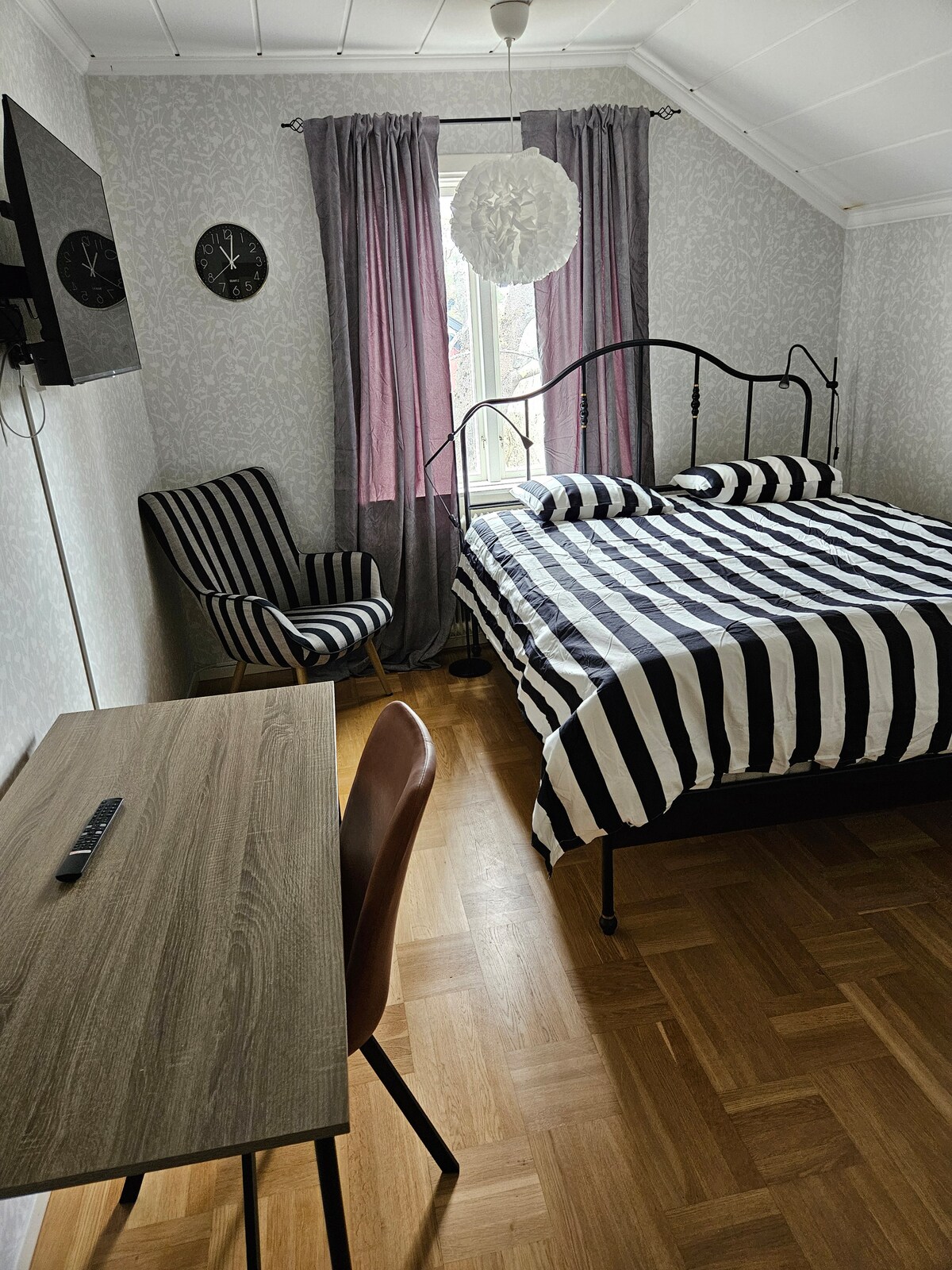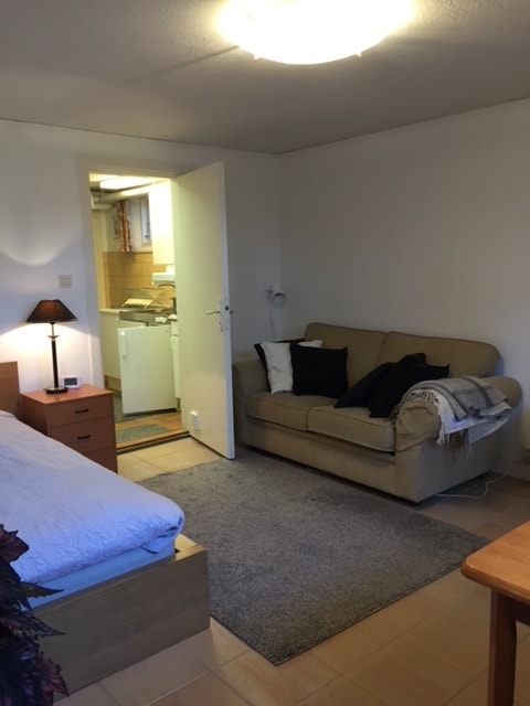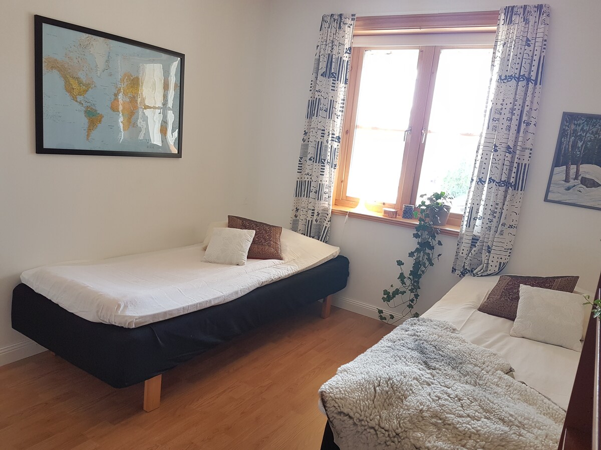 The apartment is located in a villa in Sofiehem and has its own entrance, private toilet. Shower and bathtub are located in the basement. There is a 120 cm wide bed and the possibility of an extra guest with mattress on the floor. Step kitchen, Micro, and Table oven available.