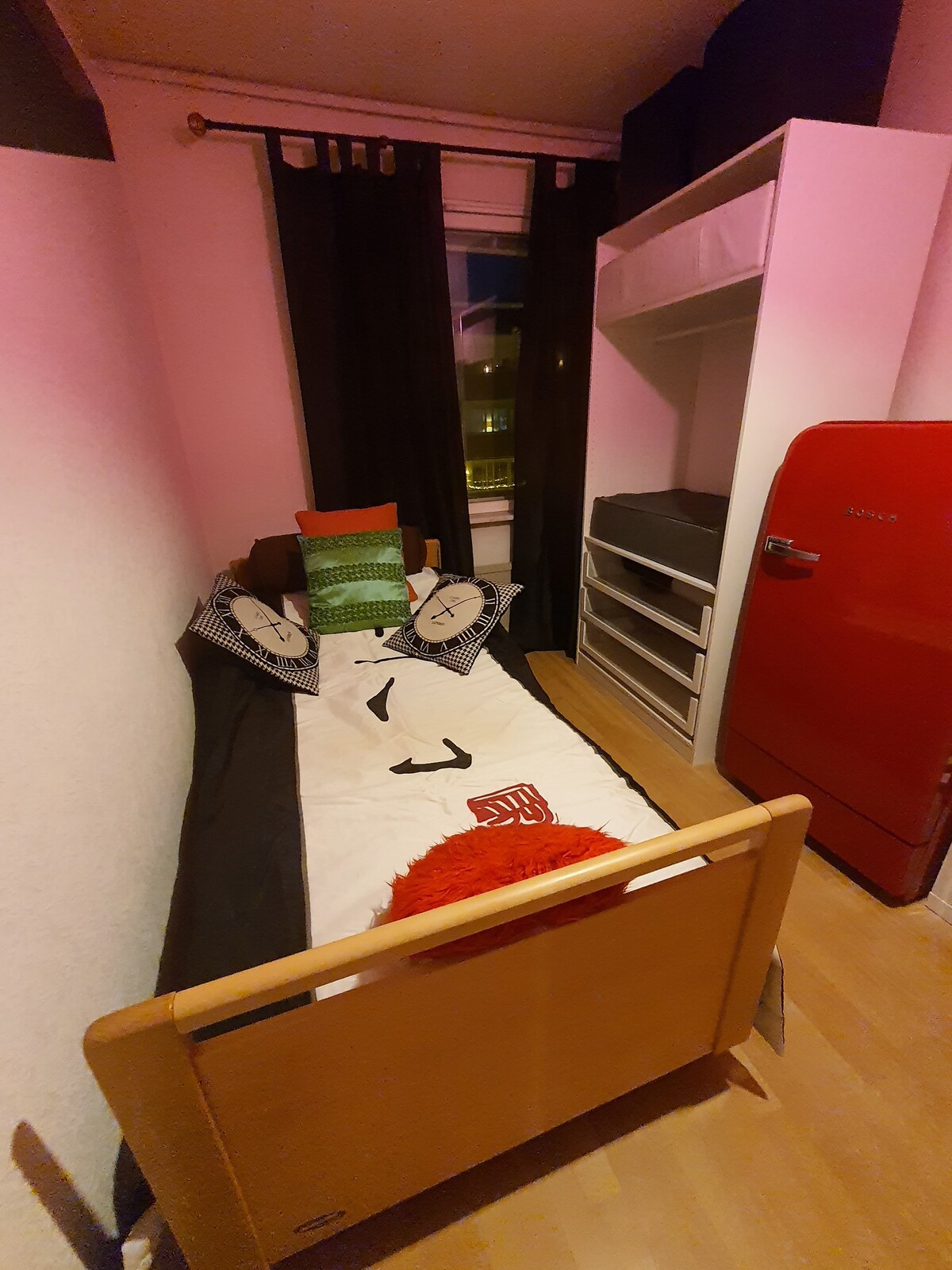 A centrally located room with a private entrance and toilet. In the apartment there is a 140cm wide bed. A spacious closet, fridge, microwave and electric kettle.