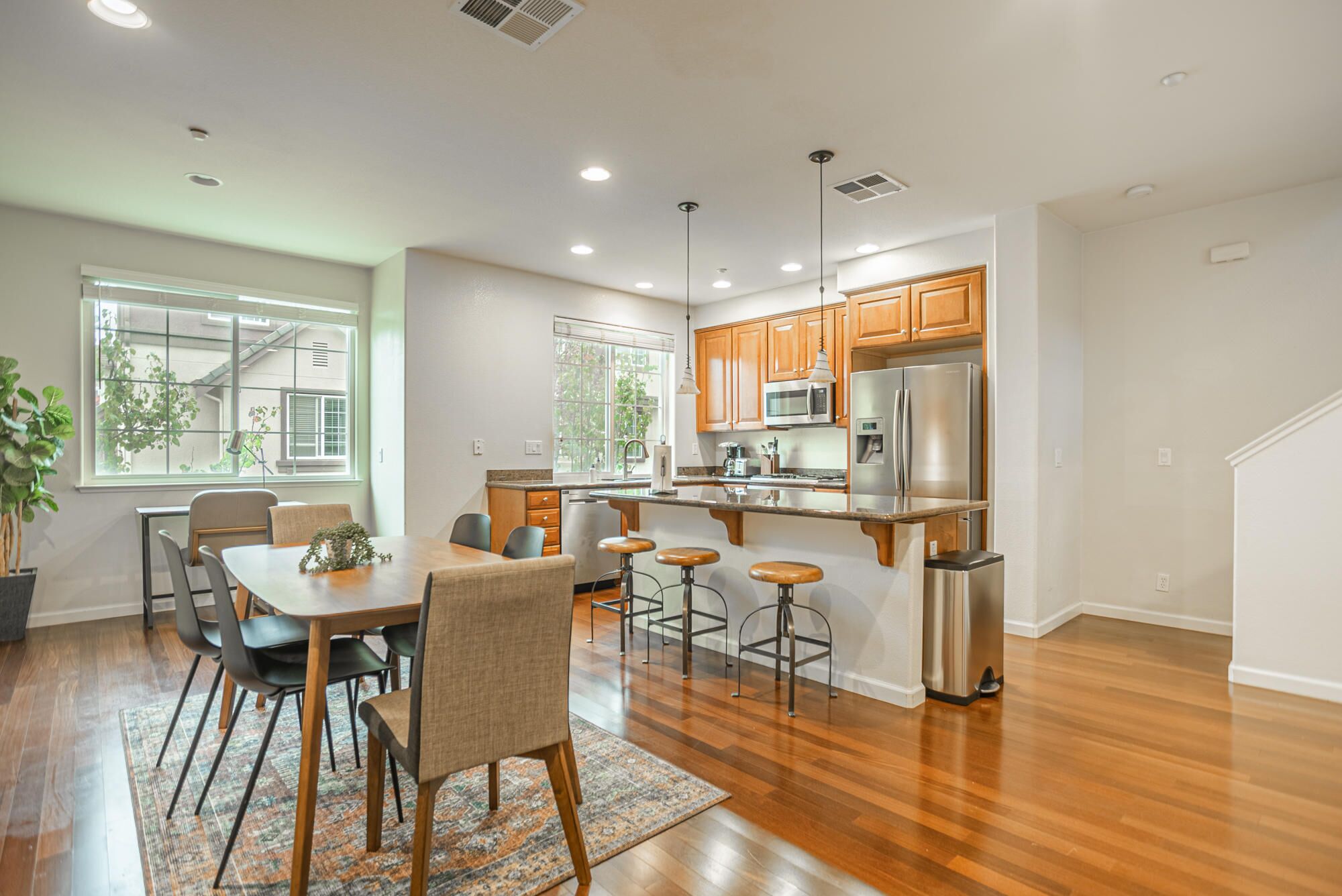 This beautiful three-bedroom, 2.5 bathroom townhome features a tri-level floor plan with over 1400 sqft of living space. The open concept kitchen, dining, and living areas are perfect for entertaining. The gourmet kitchen boasts granite countertops, a central island/breakfast bar, and stainless steel appliances. Unwind in the lovely master suite with a full bath featuring dual sinks and a shower/tub. Enjoy complex amenities including a community pool, clubhouse, play area, and meticulously maintained grounds. This ideal home is centrally located near Union City BART (5 mins walk), freeways (880/680), shopping, and restaurants.