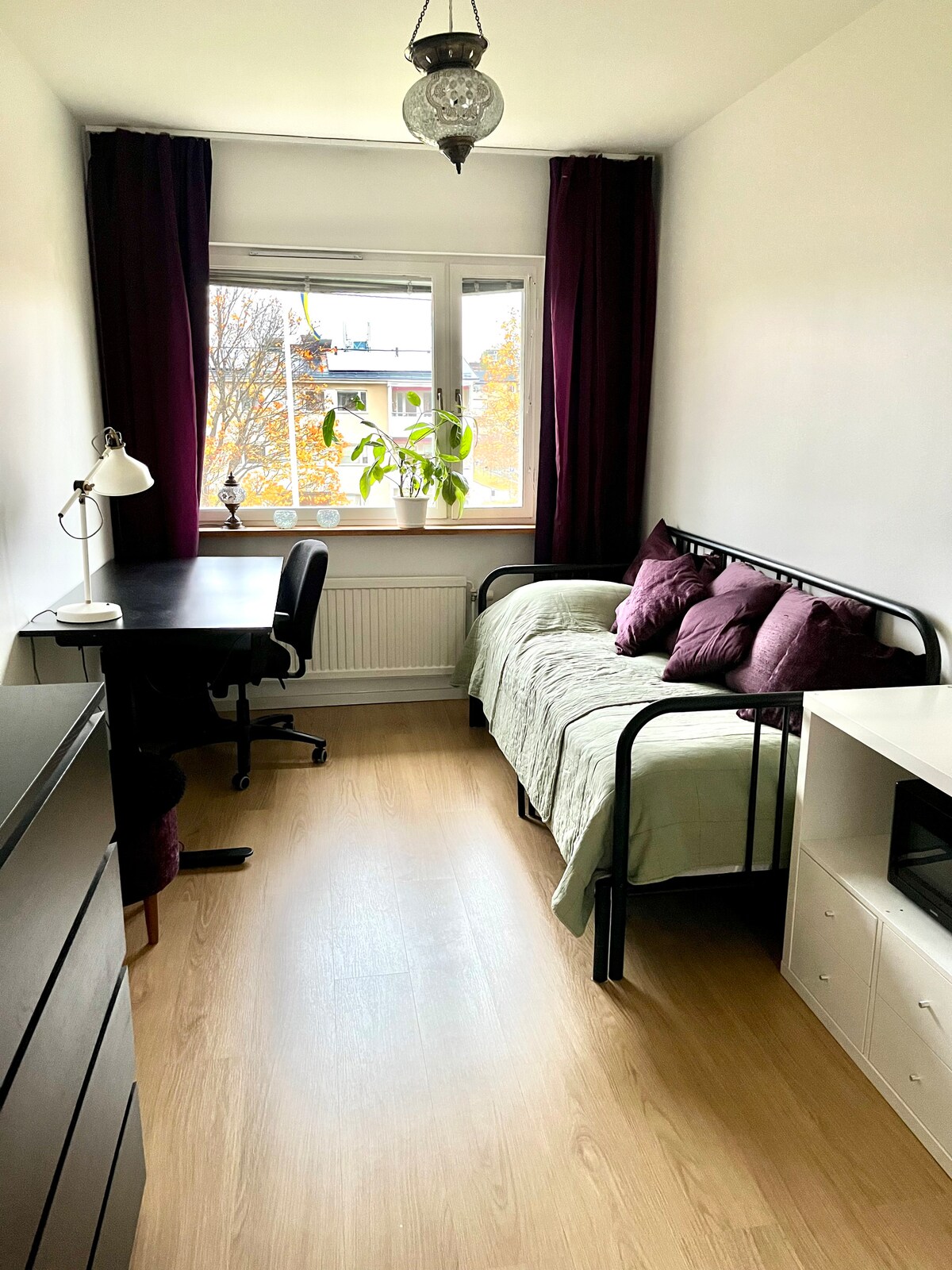 I rent out a room in a four-room apartment. The room has a bed of 120×200 cm, and an extra mattress is available to borrow if needed. WiFi and heating are included, and you are welcome to use the kitchen.
