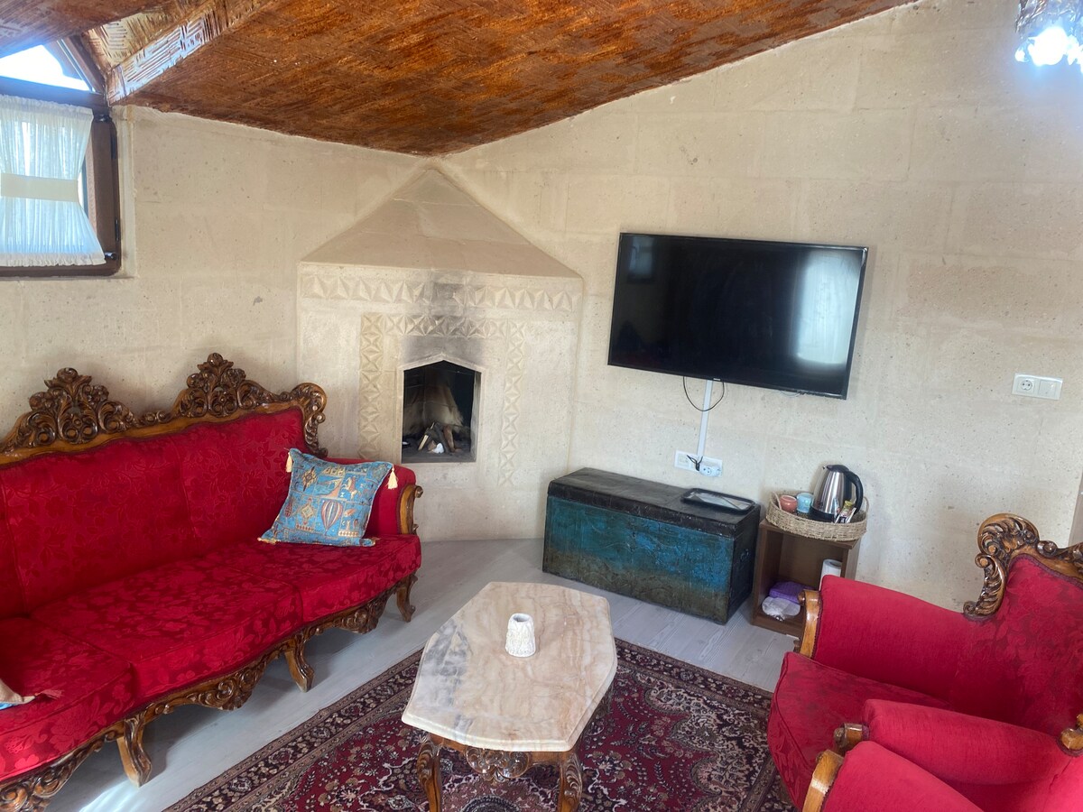 Our private suite in Ortahisar is designed to make your Cappadocia experience unforgettable. From your balcony, you can witness the unique view of hot air balloons coloring the sky in the early hours of the morning . You can unwind in your private jacuzzi to relieve the day's fatigue and enjoy your time with our 43-inch smart TV (with apps like Netflix and YouTube) . Your comfort is our priority in our modernly furnished room. You can prepare snacks in the mini-kitchen whenever you wish and enjoy the enchanting atmosphere of Cappadocia on your balcony. Our suite is an ideal accommodation option for those who want to relax and explore the historical and natural beauties of the region .