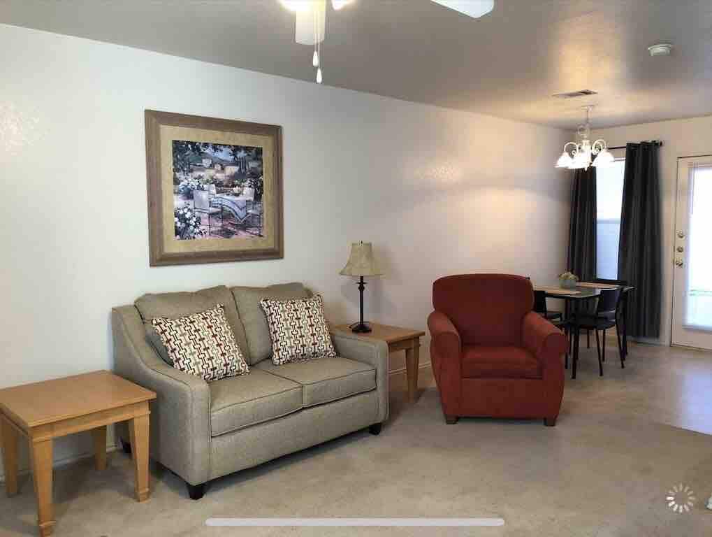 This fully furnished apartment comes with a full kitchen, washer/dryer, dishwasher, TV and back patio for watching the sunset. Minutes from Fort Hood, Stillhouse Lake, Target, good grocery stores and our local In-N-Out. Comfortably hosts 3 people. Wi-Fi included.