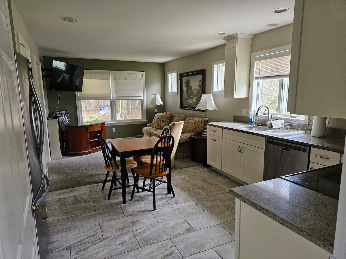 - This Completely Private 4-bedroom suite includes a cozy sitting room/ Kitchenette and ensuite full bathroom. We provide free High Speed Fiber Optic fed wireless internet access & Spectrum HD Television programming in the sitting room and reliable Cellular Phone coverage 24/7/364 days a year. Bottled spring water is included in the beverage chiller for the K-cup coffee maker, Hot water pot and drinking water (our Spring fed well is delicious but a little hard). The space comes seeded with cleaning, paper products, extra garbage bags, K-cup coffees, tea bags, sweeteners and creamers.
