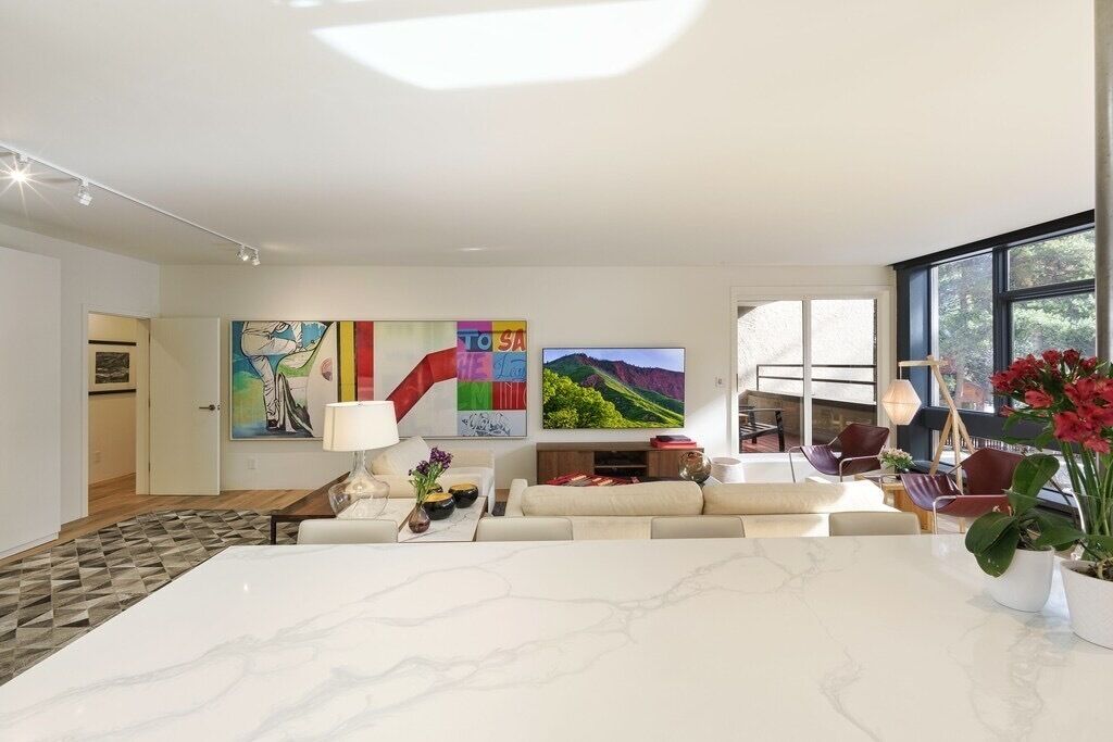 You must stay at this completely renovated condo in the world renowned Vail Racquet Club. Be one of the first guests in this fresh and newly remodeled 1 bed/1 bath condo. Conveniently located on the ground floor so no carrying your heavy luggage up many flights of stairs. Gore Creek flows by just steps from the front door. There are quartz countertops, modern new furniture, a gas fireplace, a delightfully comfortable & new queen size Sealy Tempurpedic adjustable bed in the master and a Queen sized memory foam topped sleeper/sofa in the living room. For your entertainment; the condo has a 48" LG C3 OLED TV with 4K Apple TV and Sonos Beam Sound-bar & Comcast Cable in the living room. The bedroom also has a 55 inch Smart TV with Apple TV and Comcast Cable. We supply free cable and WiFi in the unit should you need to connect to the outside world during your stay. This condo boasts LED feature lighting throughout and Hunter Douglas electric-powered blinds. Nights in can be warm, cozy, and romantic with the Montego gas fireplace located in the living room. The kitchen features full size appliances and is fully stocked with anything and everything that you may need to create tasty meals. We provide staple items like coffee, tea, sugar, oils and various spices. Building 10 laundry facility is 3 doors down from our condo on the ground floor.