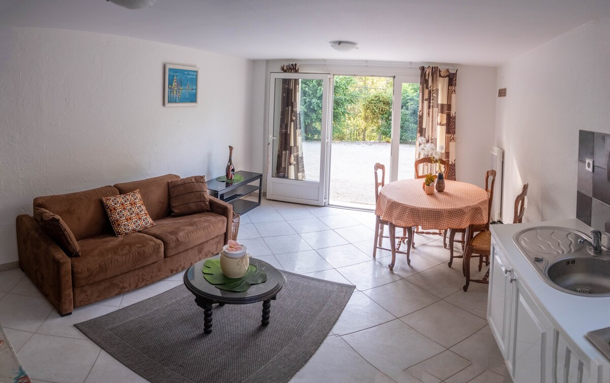 For 4 people: this accommodation includes a bedroom with a double bed, a large living room with a convertible, a fully equipped kitchen, a bathroom with bath and a separate toilet. All rooms open onto a terrace and garden and have good exposure.
