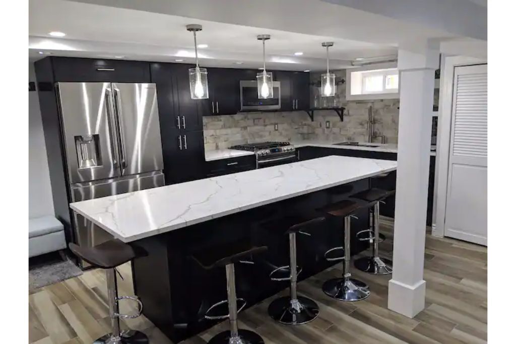 Stay in our spacious and comfortable 2-bedroom basement apartment, perfect for families or small groups. It features a king-sized bed in one and a queen-sized bed in the other, along with a private bathroom, a fully equipped kitchen, and a cozy living room. Just 12 minutes from JFK Airport and 5 minutes from UBS Arena.