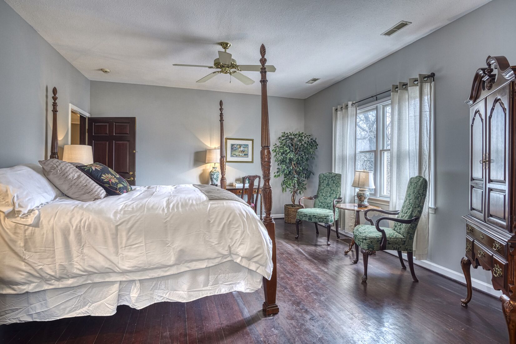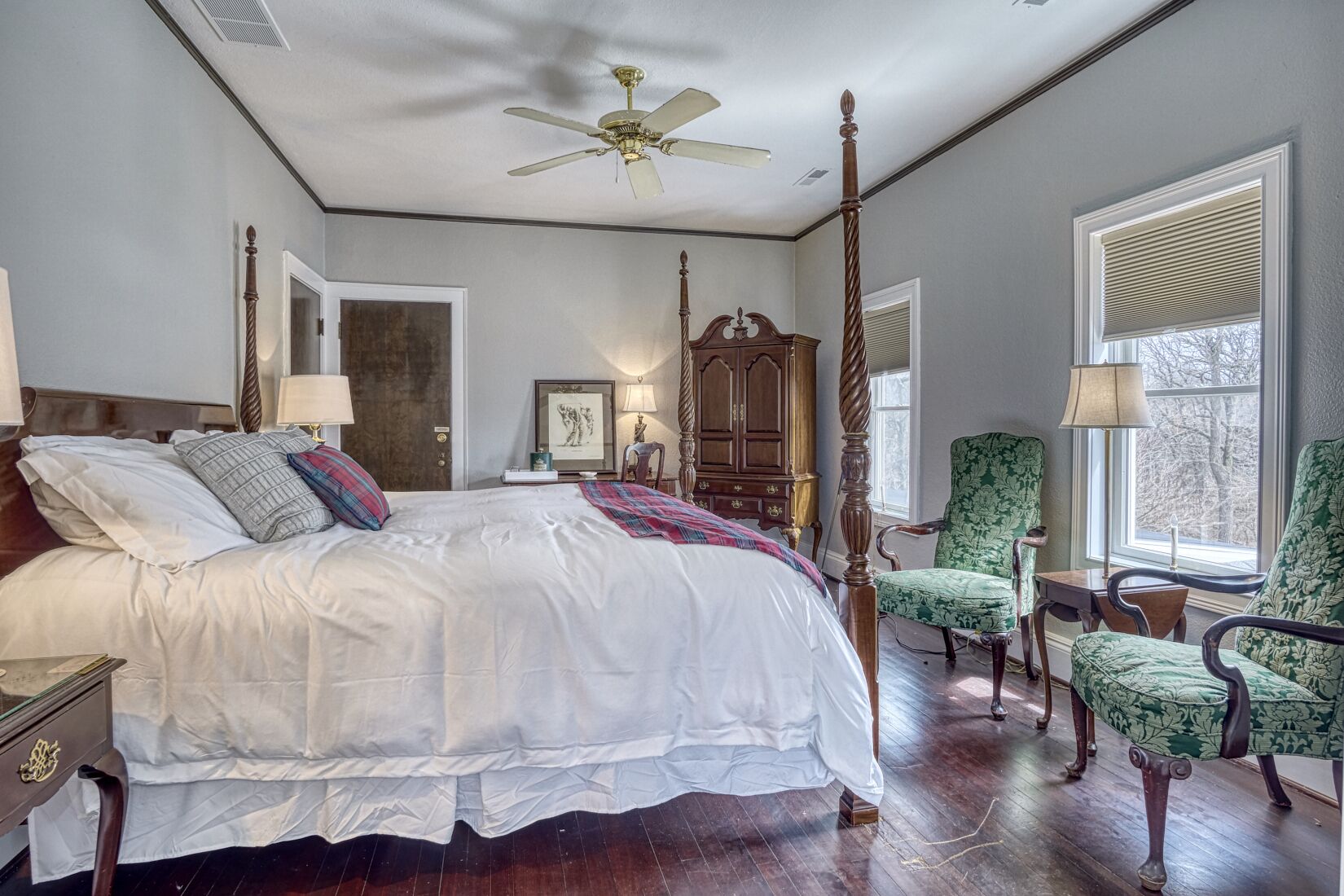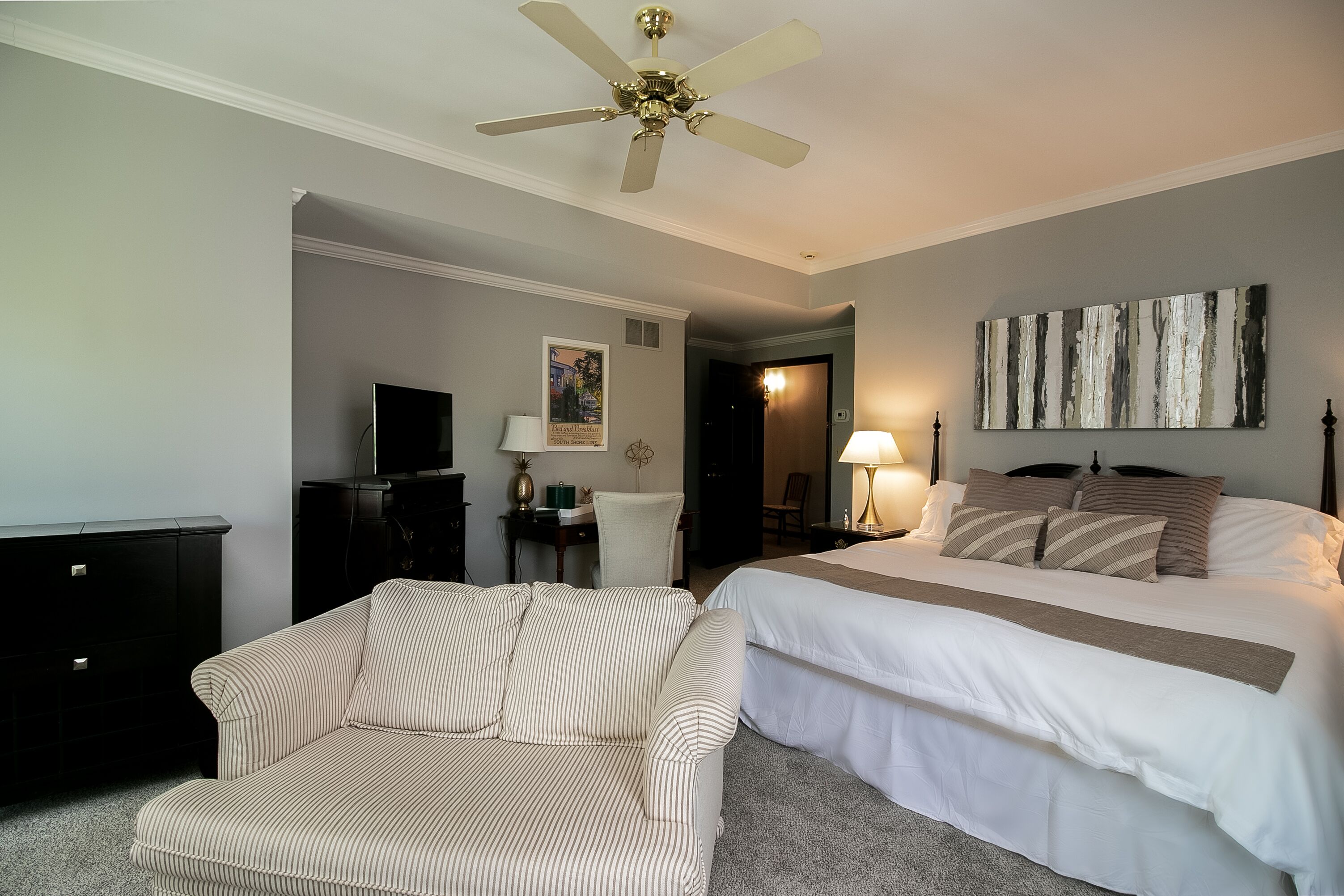 -Master Bedroom on the main floor: 2 people (King bed & ceiling fan.)