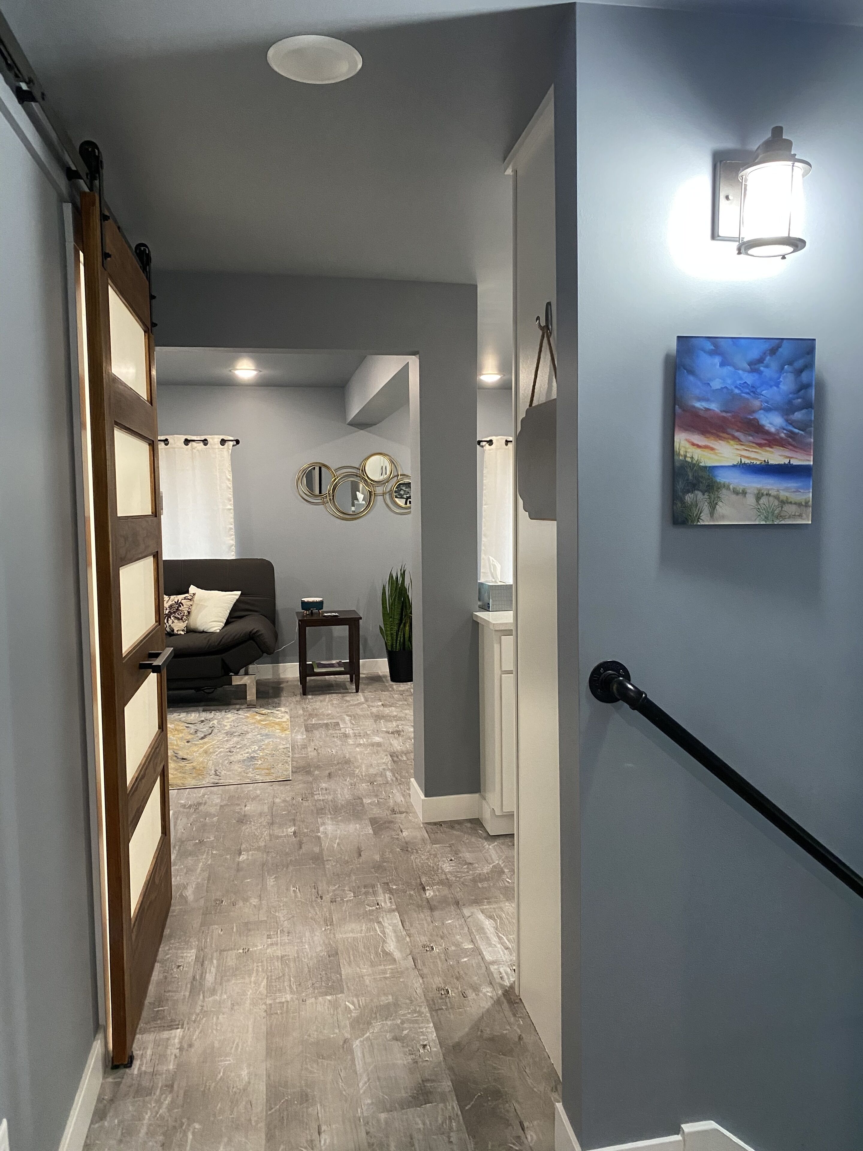 Rocking chairs are just outside your apartment on the covered porch. Enjoy your morning coffee! There is also a backyard firepit with 8 chairs, a cornhole/bags set, as well as three wooden picnic tables surrounded by string lights for any guests to use. Please note that you may see renters of other apartments utilizing these outdoor areas. While we used to supply firewood, it attracted rodents--and so we now ask that guests bring their own firewood if they'd like to have a bonfire. We also ask that guests be mindful of their volume, as many of the bedrooms in the apartments face the back of the home. Sound machines are provided in every sleeping area, and we do ask that guests follow quiet hours so as to not to disturb other travelers. :)