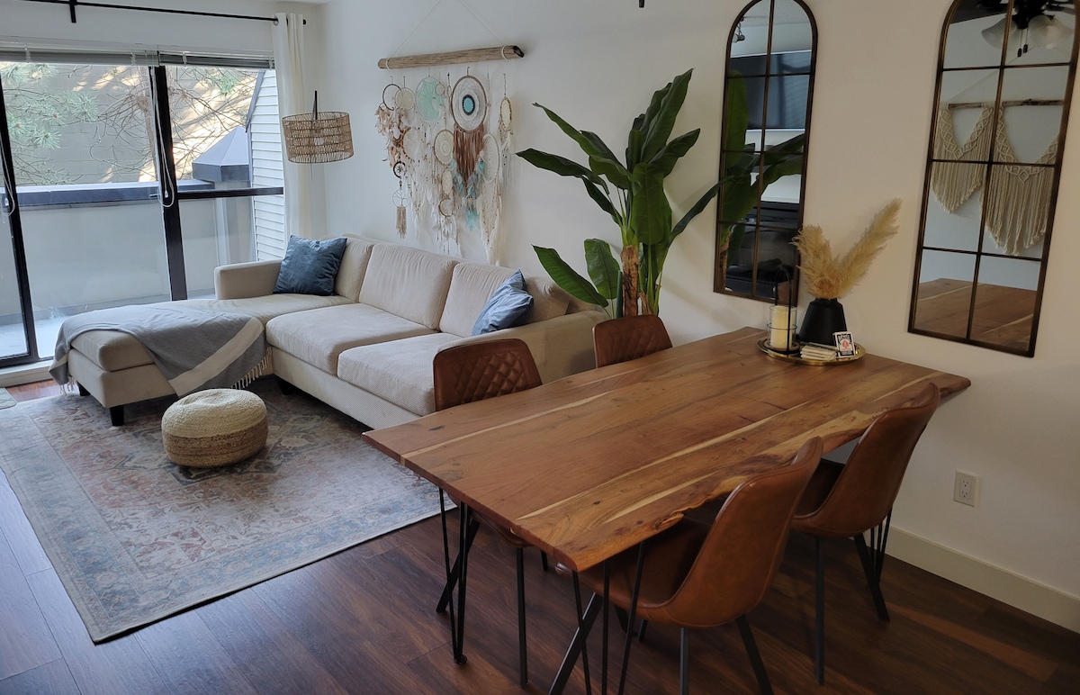 The apartment is nested in a superb, quiet neighbourhood! This location is fantastic! Walk out your front door & you are only steps to beautiful, sandy, Sunset Beach, a charming commuter ferry, ocean & sunset views! Stanley Park is within walking or cycling distance. Kayak rentals & boat rentals close by at Granville Island. You'll love coming home to this warm and welcoming apartment after exploring beautiful Vancouver