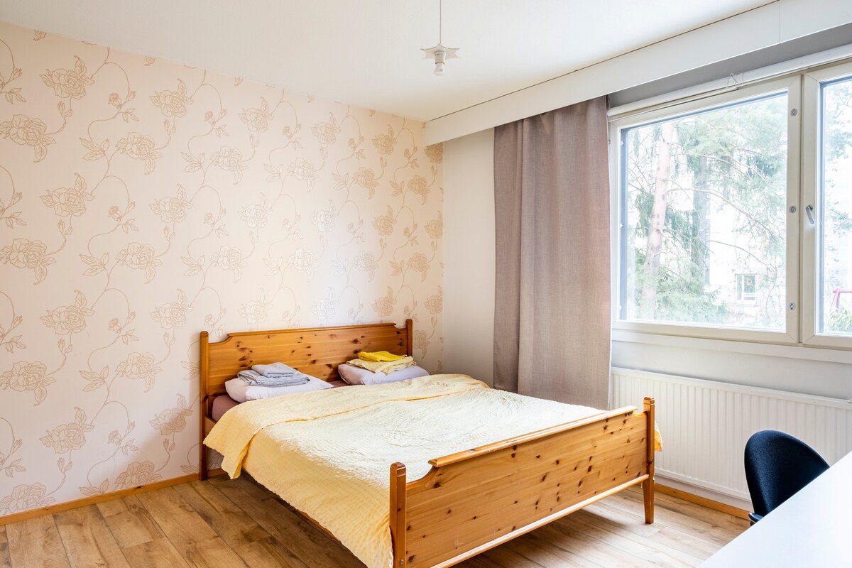 This Vantaa apartment boasts 1 inviting bedroom with a full bed. The bathroom is equipped with a shower, hair dryer, and bidet for your convenience. Our delightful space is perfect for guests looking for a cozy retreat. Whether you're staying for a weekend getaway or an extended vacation, our place is equipped for both long or short stays to make your holiday one to remember.