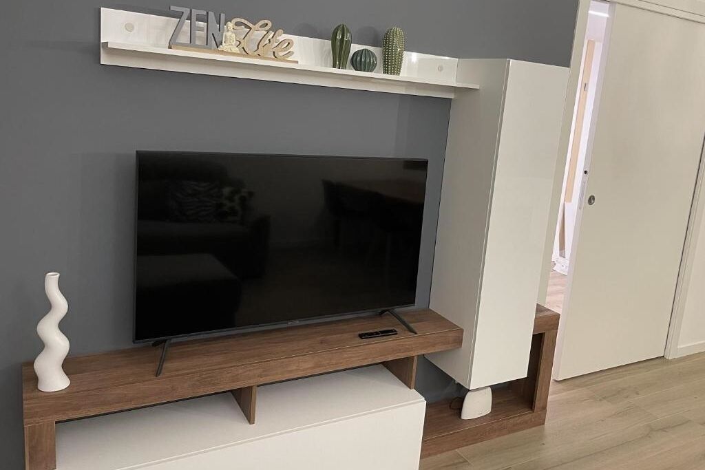 The apartment has a large fully equipped kitchen, a bathroom with stone shower, a dining area and a cozy living area with sofa that invites you to read or enjoy the view. The bedroom has a TV, various closets and a cozy double bed made of solid wood with a latex mattress. Even from the bed, you can enjoy a wonderful view of the lake and the mountains.