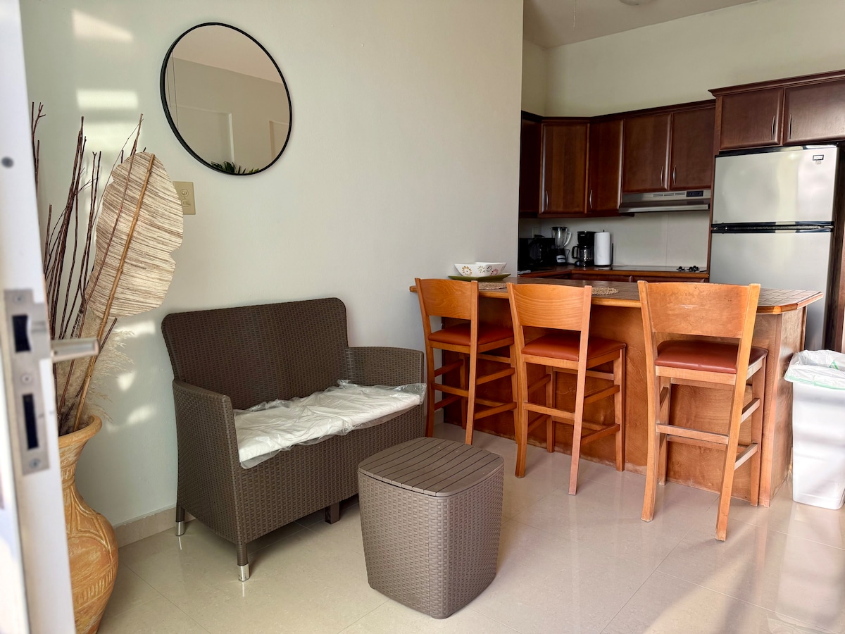 ✨ Tropical Sunrise ✨ Spacious tropical apartment for up to 8 guests 🌴☀️. Relax on the balcony with stunning sunset views 🌅 and enjoy the Caribbean vibe. Just a 4-minute walk to the beach 🏖️, fully equipped with kitchen, bathroom essentials, and beach gear for sunny days. Perfect for families or groups looking for comfort, relaxation, and island charm 🌺🌊.