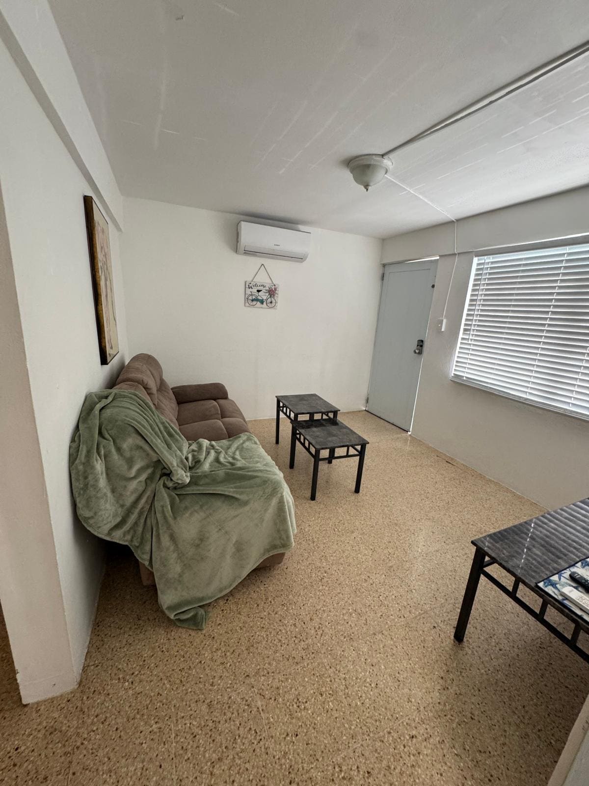 Family and friends will be close to everything when staying in this central apartment. Just 10 minutes from Playa Puerto Nuevo, 15 from Playa Los Tubos, and 20 from Playa La Esperanza and Mar Chiquita. Perfect for surfing enthusiasts due to its unbeatable price and proximity to the surf spots in Puerto Nuevo and Los Tubos. You will fall in love with this modern and cozy two-bedroom apartment, featuring a bathroom with amenities, a fully equipped kitchen, and a living room with TV/Netflix and Wi-Fi. Rest comfortably in its beautiful air-conditioned rooms, prepare dinner in the kitchen, or order takeout from one of the delicious local restaurants. Wake up with a cup of Puerto Rican coffee and relax watching Netflix. If you're visiting for work, the Wi-Fi service and a comfortable desk are ready for you. The apartment offers free parking for one car on the property, and you can park on the street if you have more than one. And now we have an electricity generator for emergencies. A/C en los cuartos y abanico de techo en la sala de estar. The apartment has a perfect location with easy access to Route No. 2 and Highway PR 22. You can quickly reach places like Cuevas del Río Camuy, Barceloneta Outlet, Old San Juan, TMobil District, El Yunque Forest Reserve... We look forward to your visit!